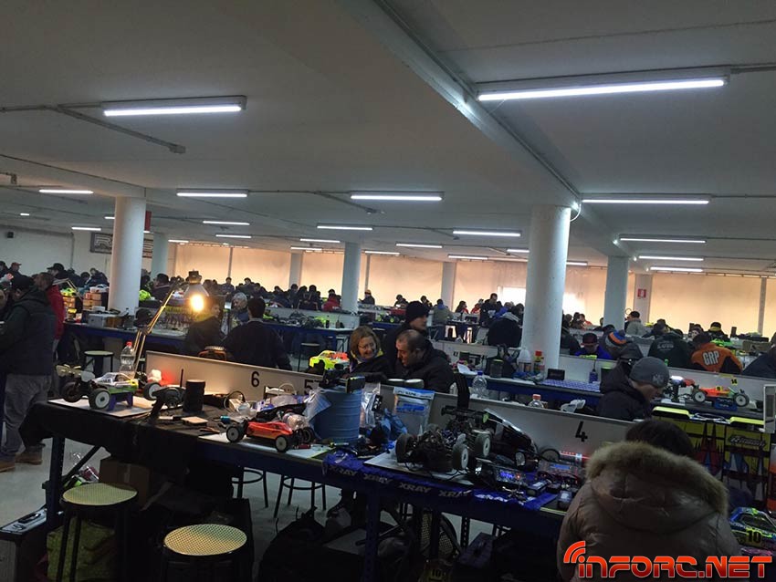 Robert Batlle y RBR36 (clic aquí) nos remiten desde Italia los tiempos finales tras las mangas clasificatorias que han tenido hoy lugar en Padova en la Italian Job 2015. El italiano Alex Zanchettin ha conseguido la pole, seguido por Elliot Boots (Kyosho / Reds) y en tercer lugar, Darren Bloomfield (Agama / Beta). Nuestro representante nacional en el evento, Robert Batlle (Mugen / Novarossi) ha conseguido la 11ª posición en la general de mangas, un resultado algo más bajo de lo que nos tiene acostumbrados, debido a una falta de tracción en su coche, algo que intentará enmendar con el setup para las subfinales de mañana.