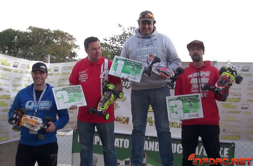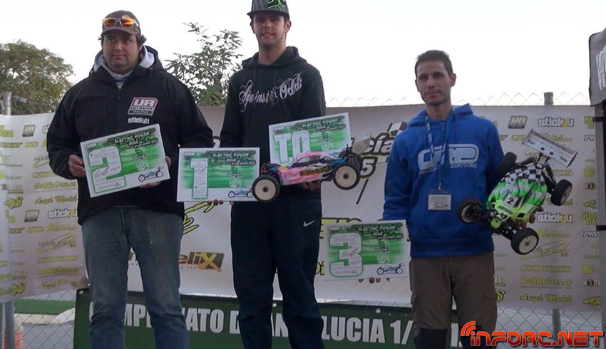 RESULTADOS FINALES – Tras un domingo intenso con las tres categorías compitiendo sin parar hasta las seis de la tarde, fue el actual Campeón de Andalucía 1/8 TT-E, Alberto Ruiz, quien se alzó en lo más alto de esa modalidad, seguido por Edu Ameijide y Bernardo Macías.