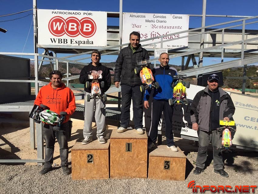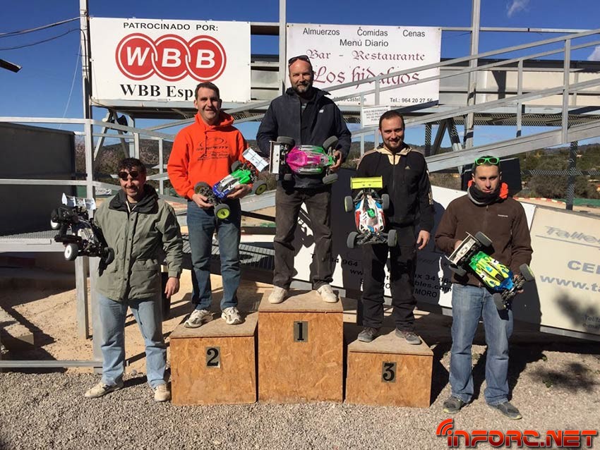1 Jose Miguel Monzonis – KYOSHO MP9E 2 Roman Mollet- SERPENT 811 SPORT – Hobbiwing-. 3 Luis Miguel Jabaloyas- Mugen 4 David Otero- MUGEN MBX7R – 5 Jose L. Hernandez- Sworks