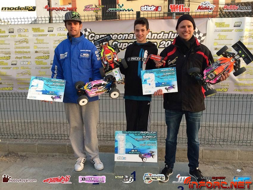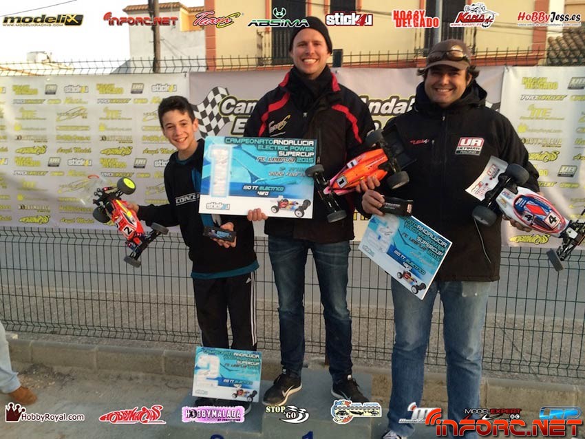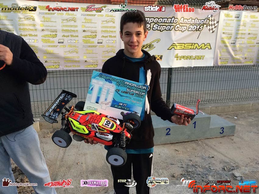 Las mangas clasificatorias de 1/8 TT-E estuvieron dominadas por el joven Juan Carlos Canas, con su Hobao SS motorizado con Tekin, las nuevas baterías Ultimate, que han tenido el mejor estreno posible en carrera y ruedas JConcepts. Juan Carlos, consiguió la pole en mangas para luego alzarse en el primer puesto de las finales, ganando la A1 y la A3, aunque sin duda la que es digna de ver en el vídeo que os traemos es la A2, en la que tuvo un pique ajustadísimo con Alberto Ruiz, actual campeón andaluz 1/8 TT-E con JQ, LRP y Sigma.