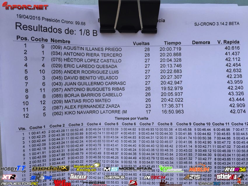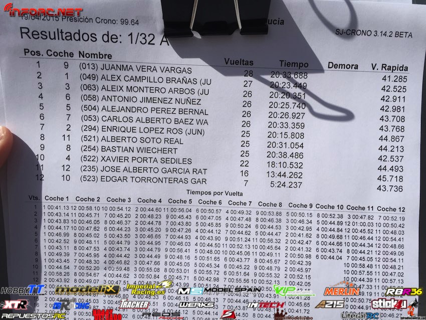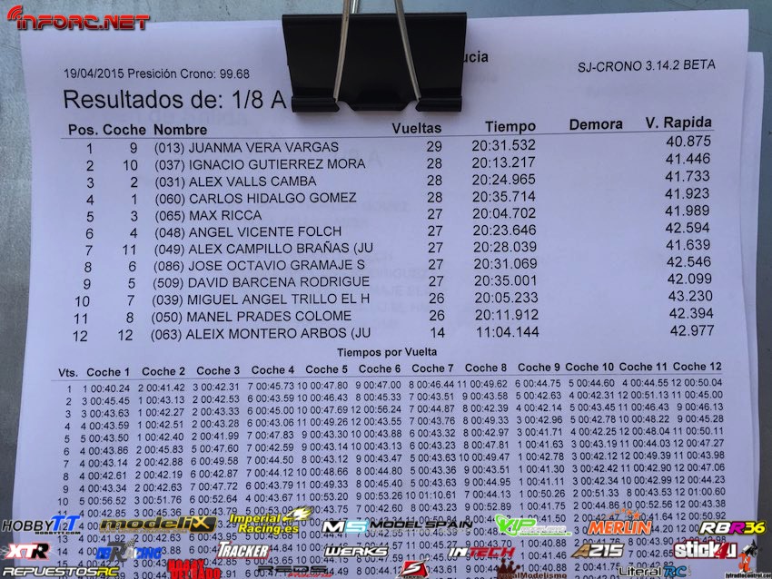 Resultados de las subfinales, iremos añadiendo las demás conforme vayan finalizando. Estad atentos a la estupenda remontada que están llevando a cabo dos campeones de Andalucía que no pudieron asistir ayer a las mangas clasificatorias, Agustín Illanes y Juanma Vera.