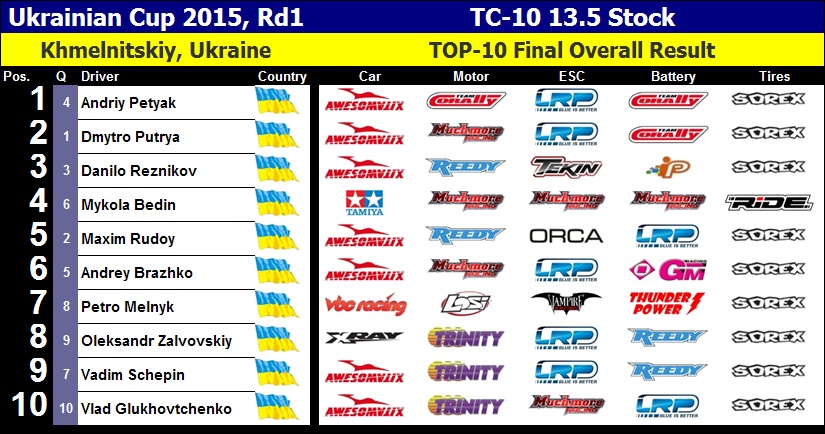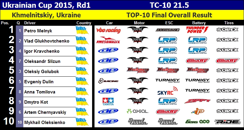 El pasado fin de semana comenzó la temporada on road en exteriores con la primera prueba de la Copa de Ucrania, en Khmelnitskiy. La climatología fue anormalmente calida y con mucho viento, provocando problemas de aerodinámica a los pilotos. Además, era el primer evento en exteriores con la nueva normativa NUFAMS, así que todos comenzaron probando los nuevos reglajes y electrónicas. A final del día, los pilotos eran ya bastante rápidos, tanto así que la diferencia entre el primero y el segundo en la final fue de 0,115 segundos, siendo el final más ajustado en los nacionales de esta categoría, al menos esta temporada.