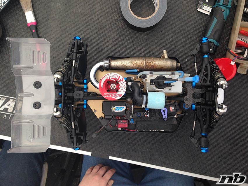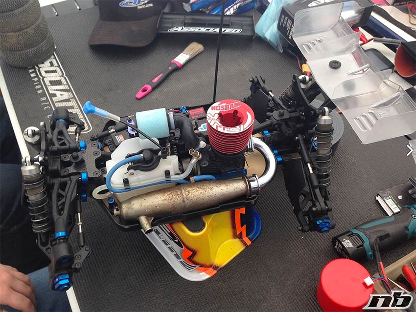 El RC es un mundillo en el que es difícil inventar algo genuino y original y que muchas soluciones ya existentes son las mejores para determinadas cuestiones, pero en este caso da la impresión de que los diseñadores de Asso no se han complicado demasiado y se han limitado a desarrollar un modelo ya existente, ensanchando ligeramente el chasis. Y es que desde que Asso comenzó con los prototipos del nuevo RC8B3, hemos visto usar diseños similares primero a Kyosho, luego el proto de Josh Alton con detalles de TLR y finalmente este parecido a Mugen. Tal vez sean casualidades, pero esa bandeja de baterías… 😥