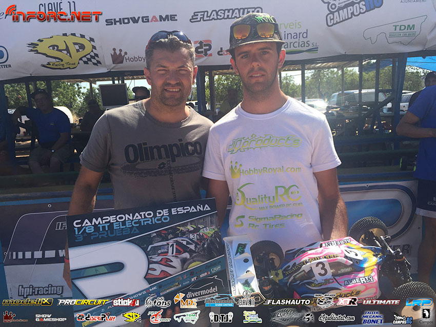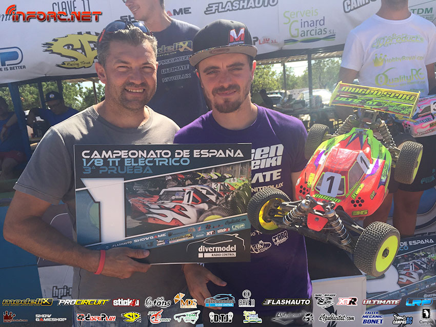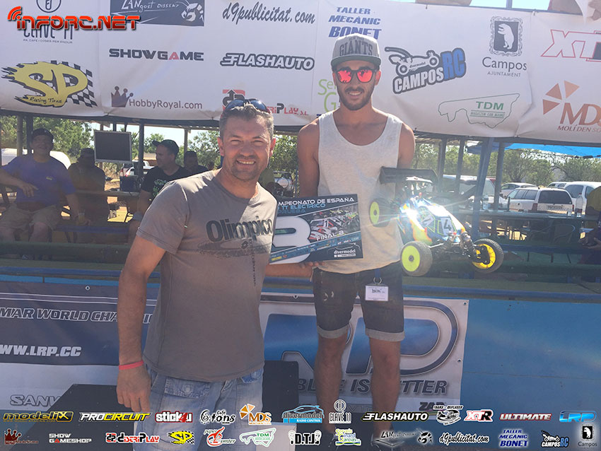 Ayer tuvo lugar la tercera prueba del Campeonato de España 1/8 TT E en el circuito de Campos, Mallorca. Aquí os traemos el vídeo con las tres finales A1 completas, comentado por Miguel Zambrana y Robert Batlle, ganador de la prueba. En segundo lugar acabó Jaume Figuls y tercero Alberto Ruiz, tras unas finales con algunos duelos por posición dignos de ver. No os perdáis el vídeo. En breve publicaremos las fotos.