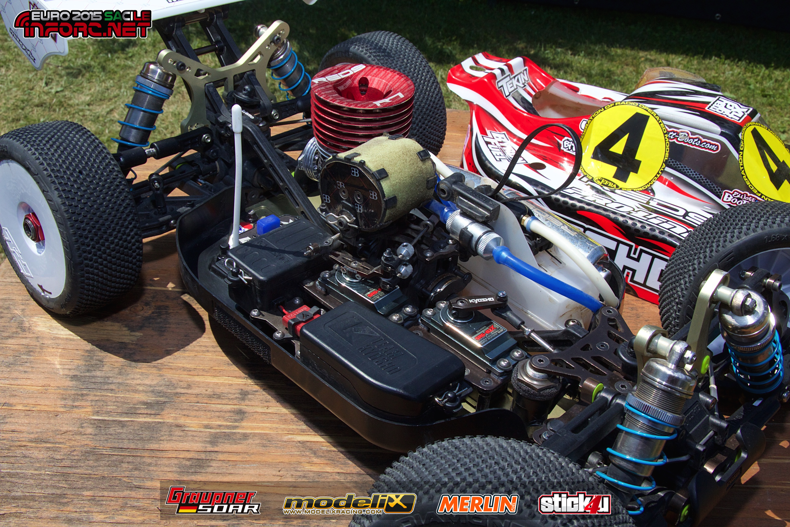 Aquí os traemos uno de los coches que pudimos trastear en el Campeonato de Europa 1/8 TT Gas 2015 que tuvo lugar recientemente en Sacile, Italia. Algunos datos a remarcar son: