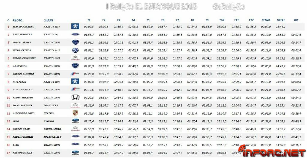 Enhorabuena a todos los valientes que terminaron tan extremo y largo rally (12 bucles). Y ya desde aquí quiero desearles a todos los clubs de rally rc que pasen unas felices vacaciones y recarguen pilas para la segunda parte del campeonato.