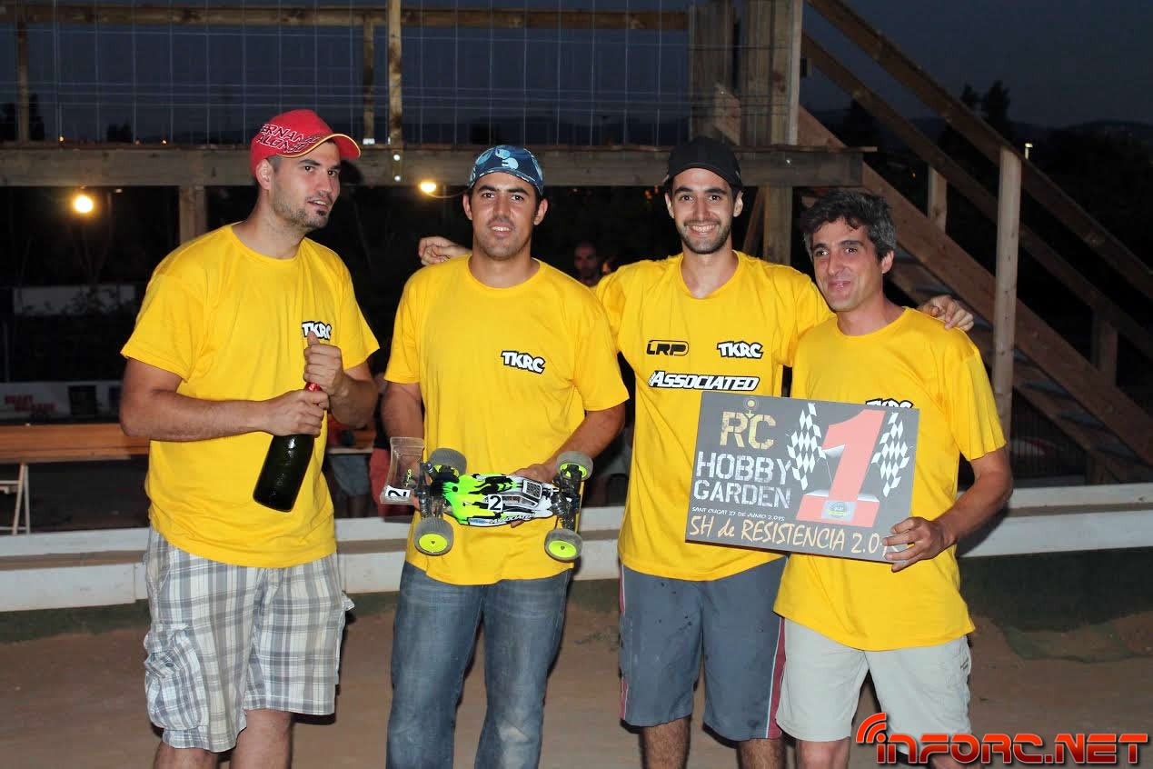 El pasado fin de semana se celebró la 4a edición del Campeonato de 5h Resistencia escala 1/10 TTE 2WD, en el circuito Qgat Track, situado en Sant Cugat del Vallés de Barcelona. Un total de 9 equipos compitieron para defender sus posiciones durante cinco horas en la pista durante el campeonato formato resistencia por equipos. Lo más emocionante fueron los últimos minutos de la carrera: el Team Nenazas, (formado por Juanma Lerma (Campeón de Catalunya 2014), Jacinto Lerma, Pere Arinsa y Ángel Leiva) lideraba por horas la primera posición con más de dos vueltas de diferencia respecto al segundo coche del equipo del TKRC Endurance Team (formado por Carlos Pineda (Campeón de España 2014, Jorge López, Xavi Armengol y Miquel Jardí). Pero en la última media hora de carrera y en un increíble sprint final por parte del TKRC Endurance Team que logró alcanzar al primer clasificado en las últimas curvas habiendo ya cantado las finales. Y en el último suspiro, la batería del coche del Team Nenazas no consiguió aguantar los últimos 30 metros de carrera impidiendo finalizar la vuelta y siendo arrebatada la primera posición por el TKRC. (Ver video de los últimos segundos del campeonato). Tercer clasificado el Team APM36 que pese a su gran ritmo de carrera, sufrió algunos contratiempos que lo relegaron de la cabeza de la carrera.