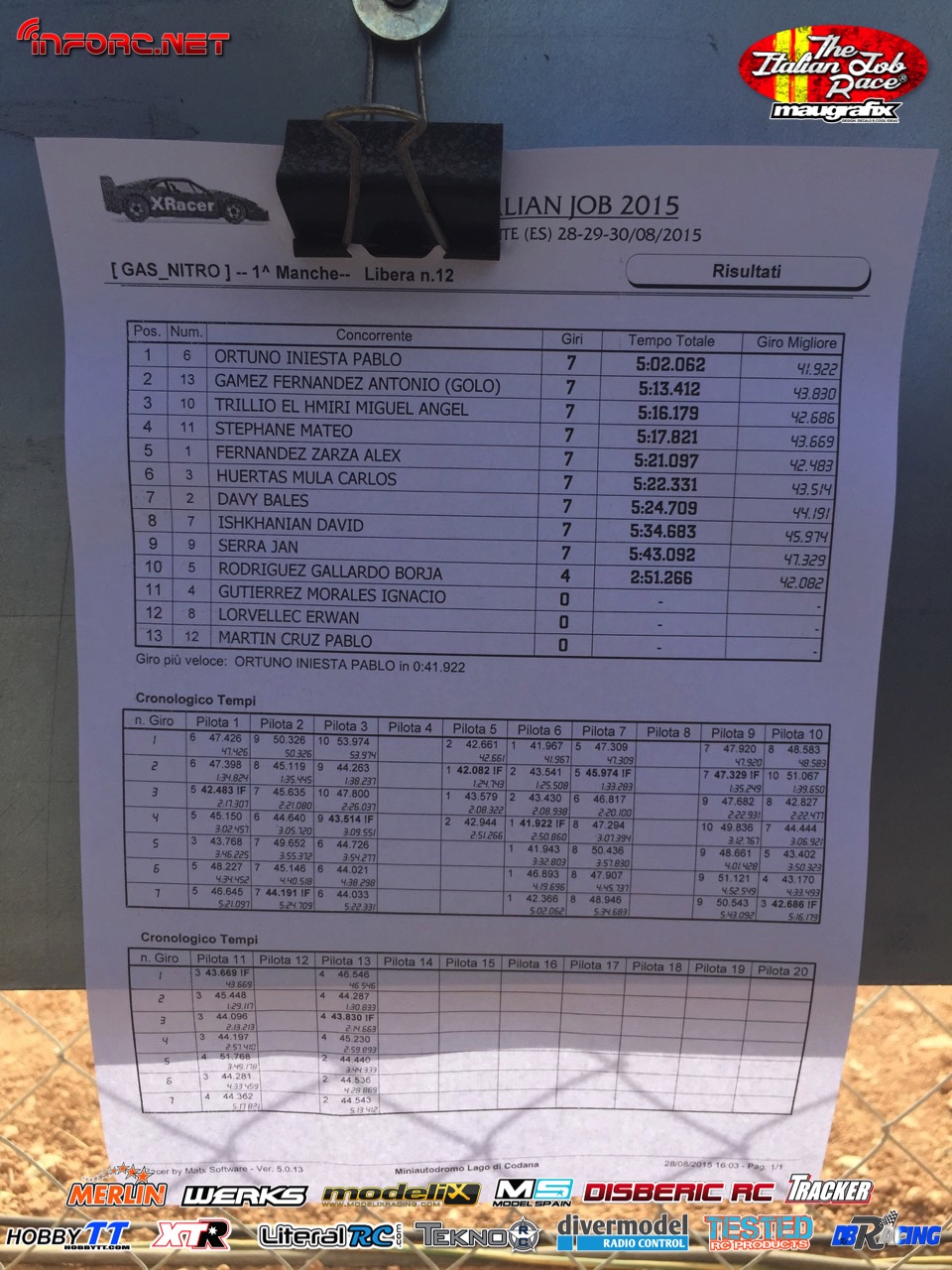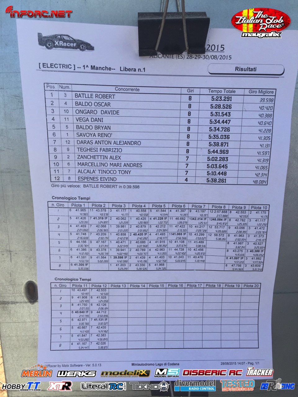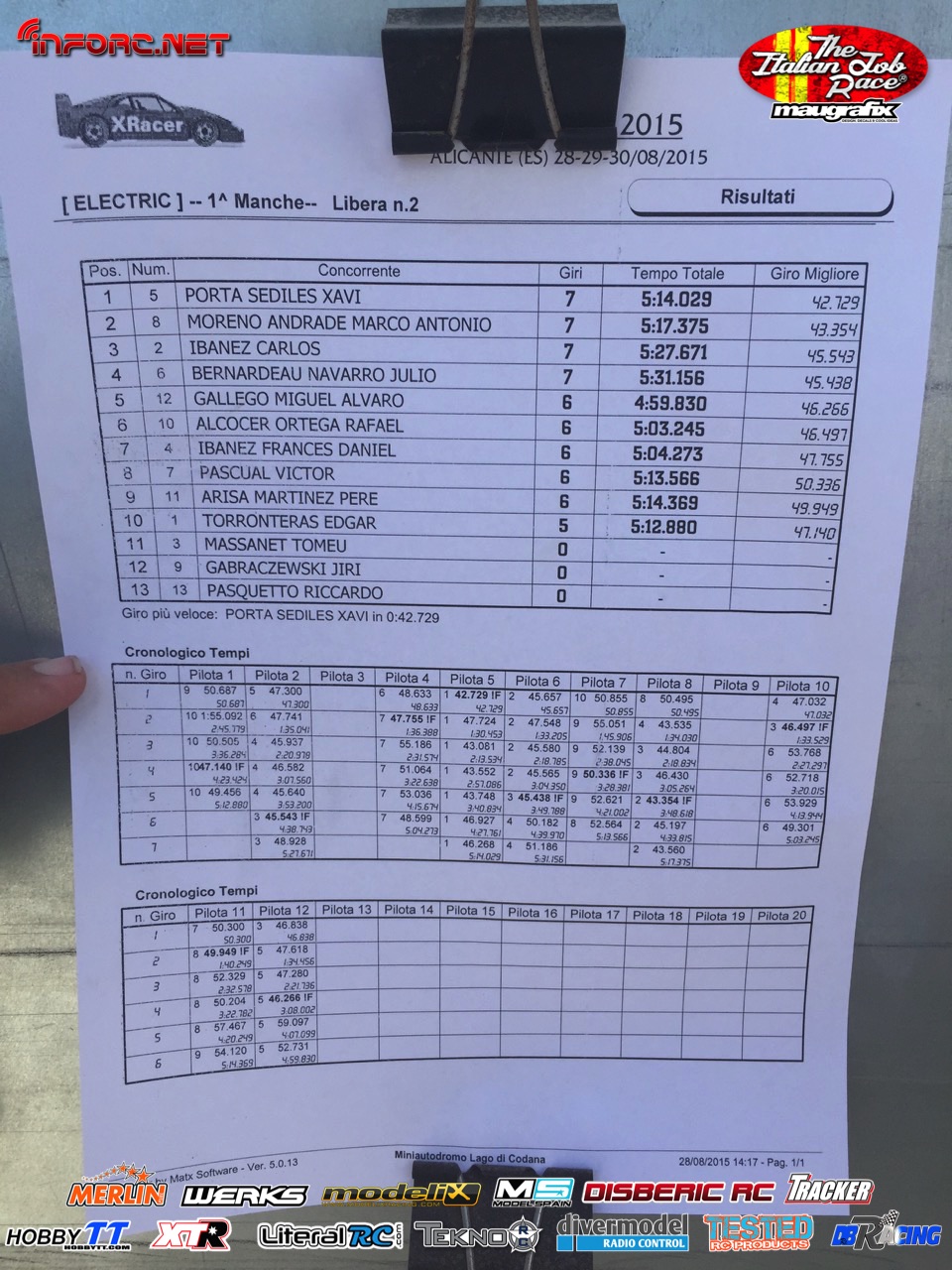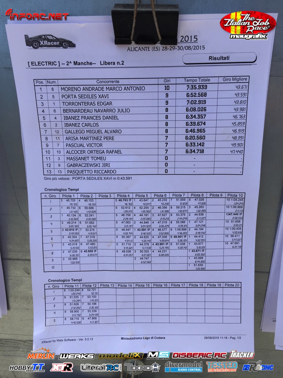 Tiempos de la manga 1 de entrenos.