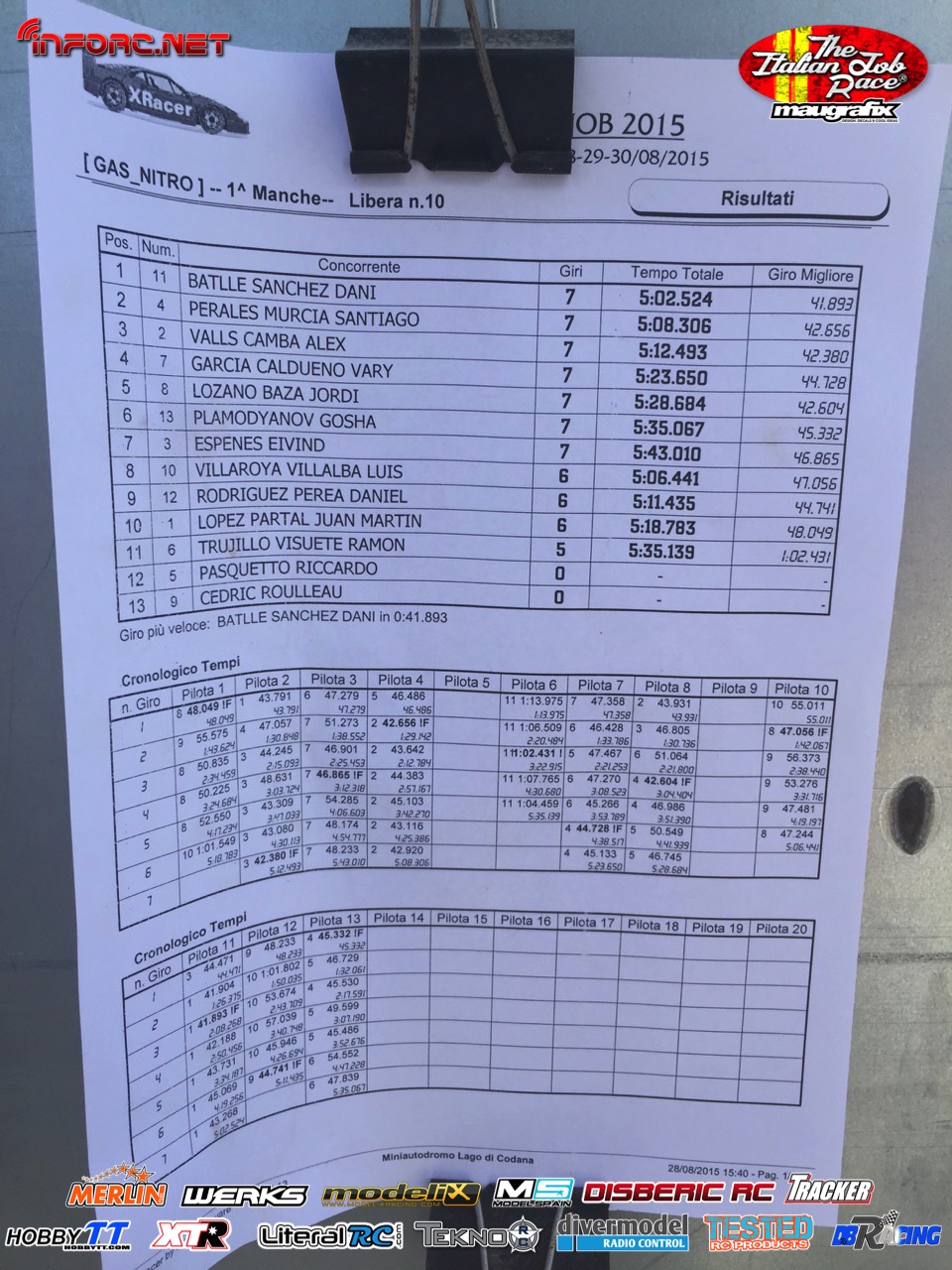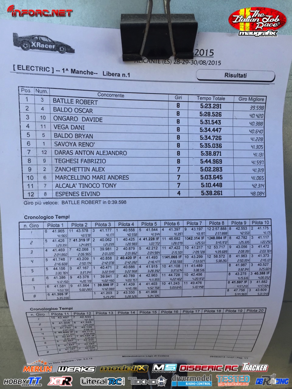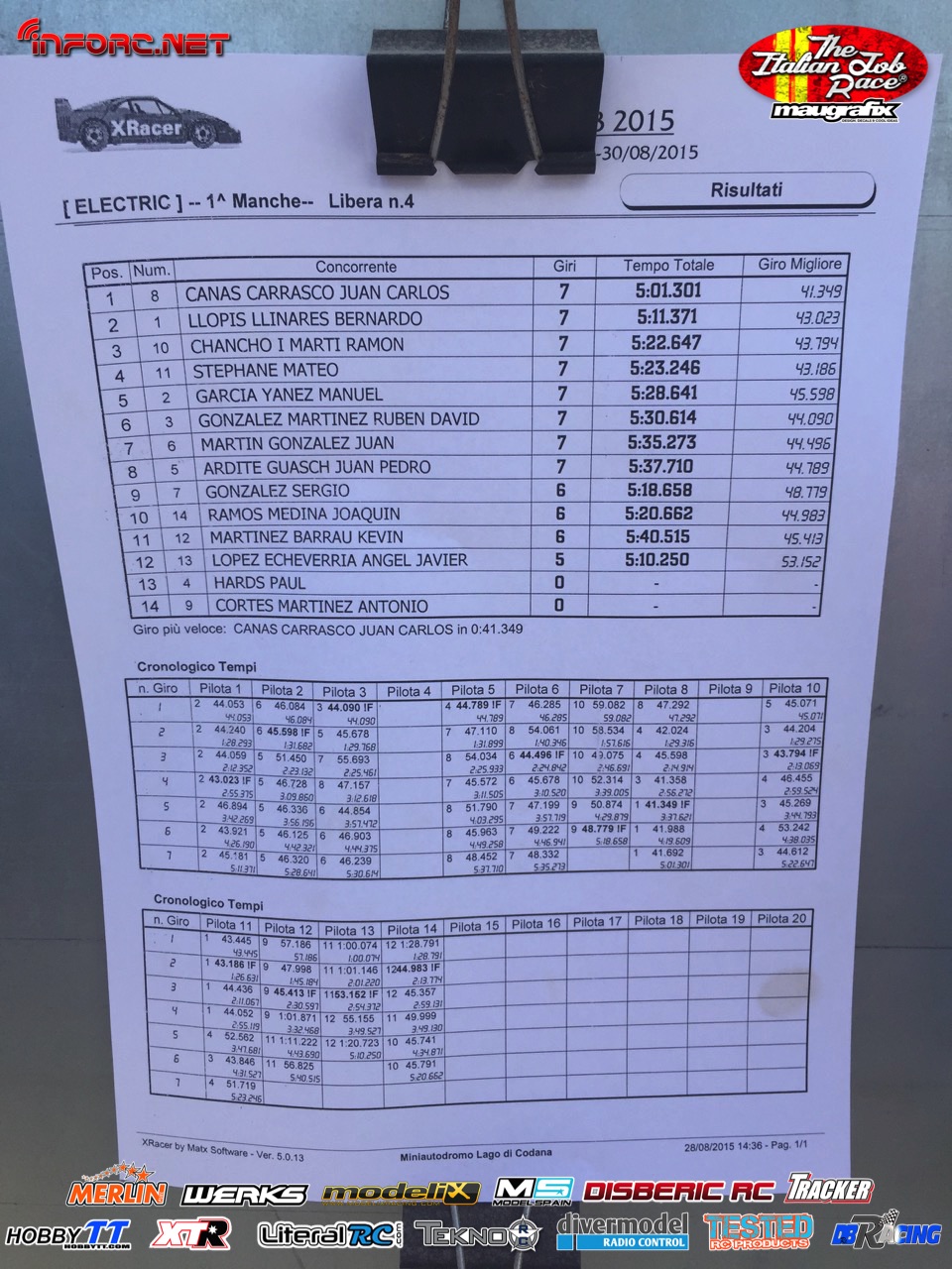 Tiempos de la manga 1 de entrenos.