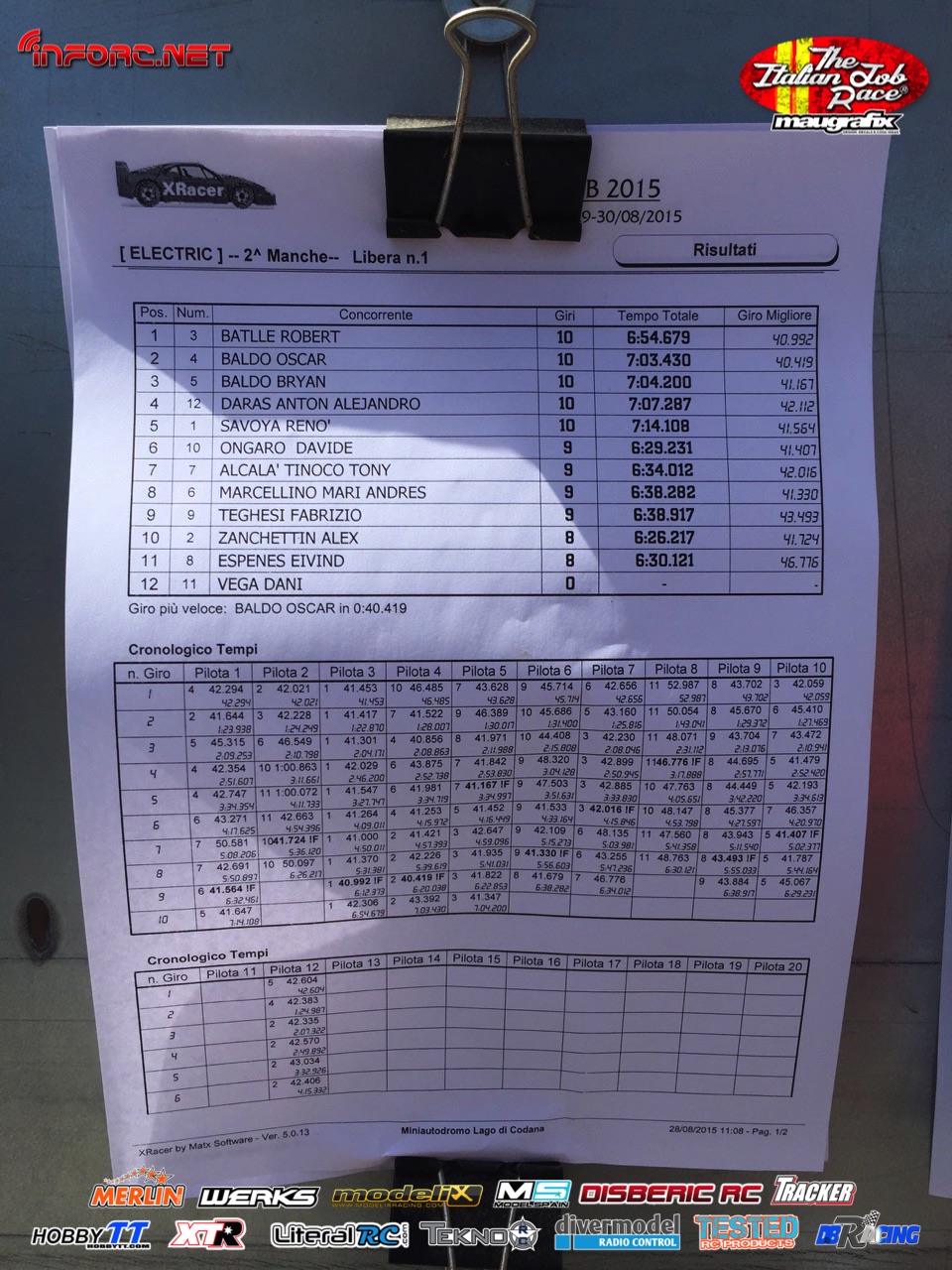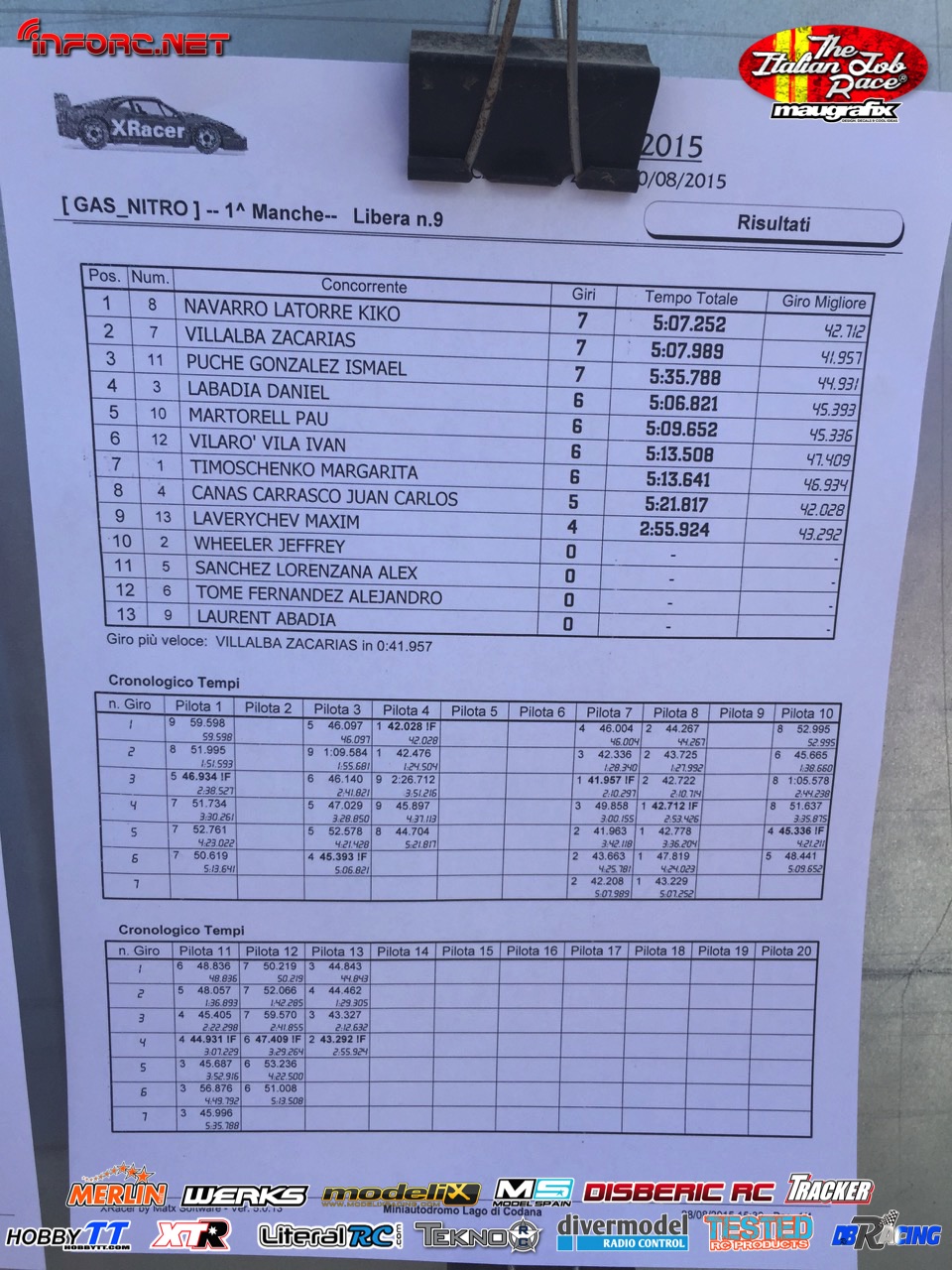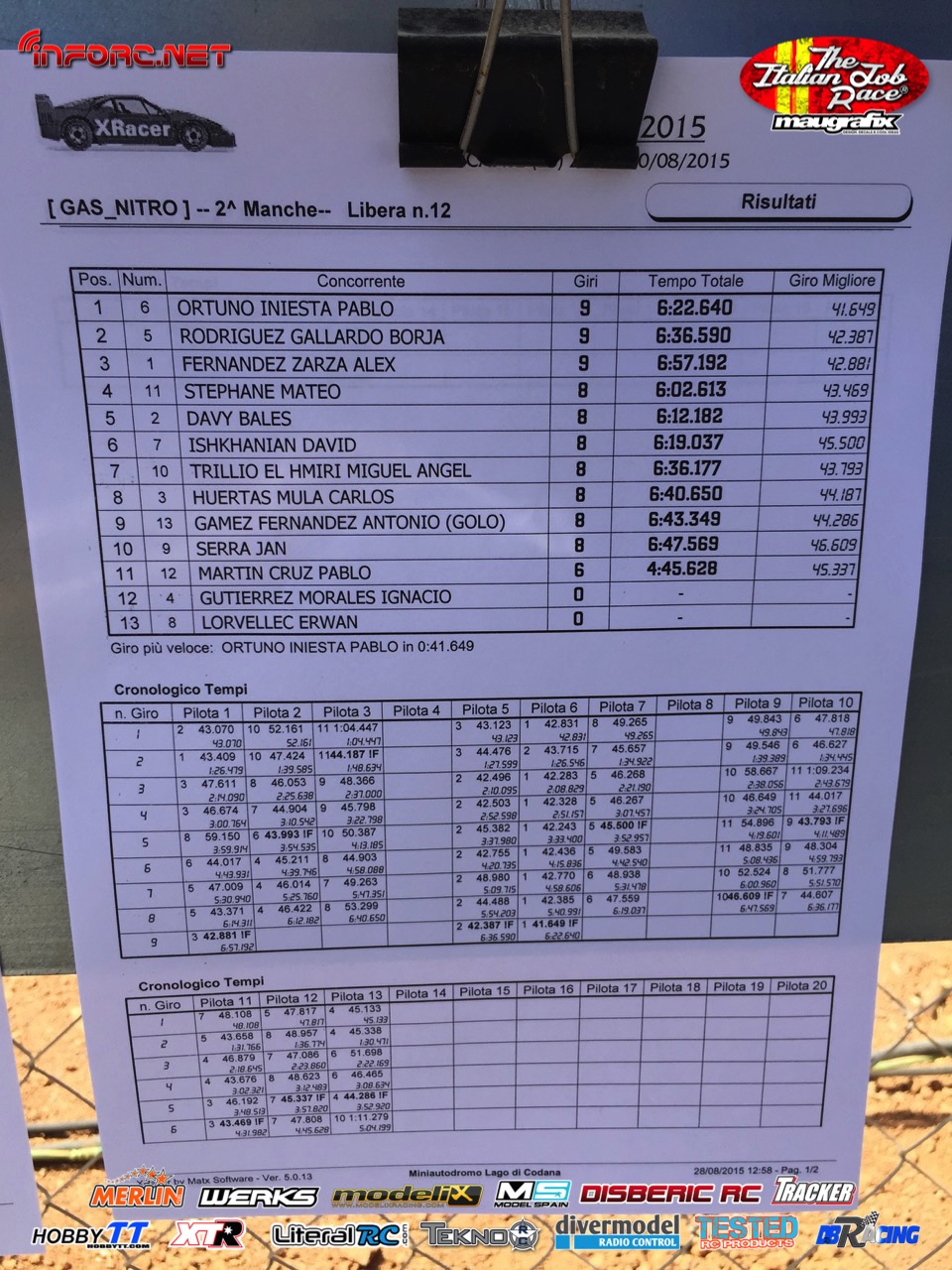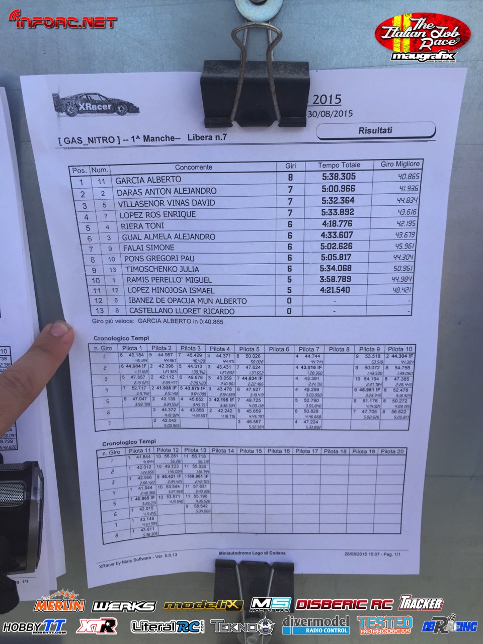 Tiempos de la manga 1 de entrenos.