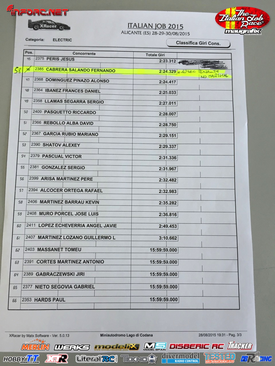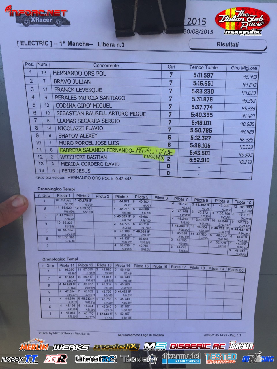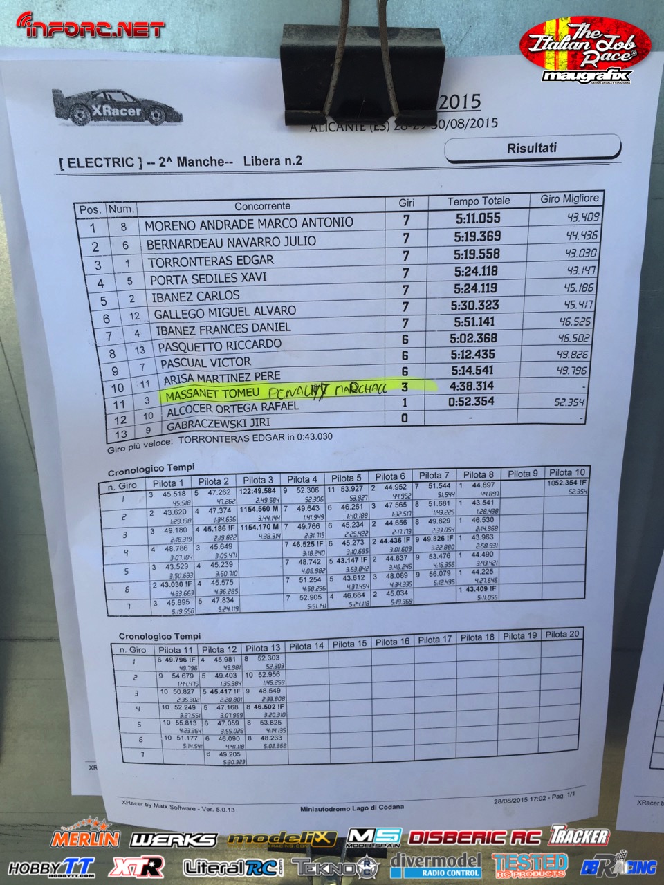 Tiempos de la manga 3 de entrenos. RECOLOCACIÓN