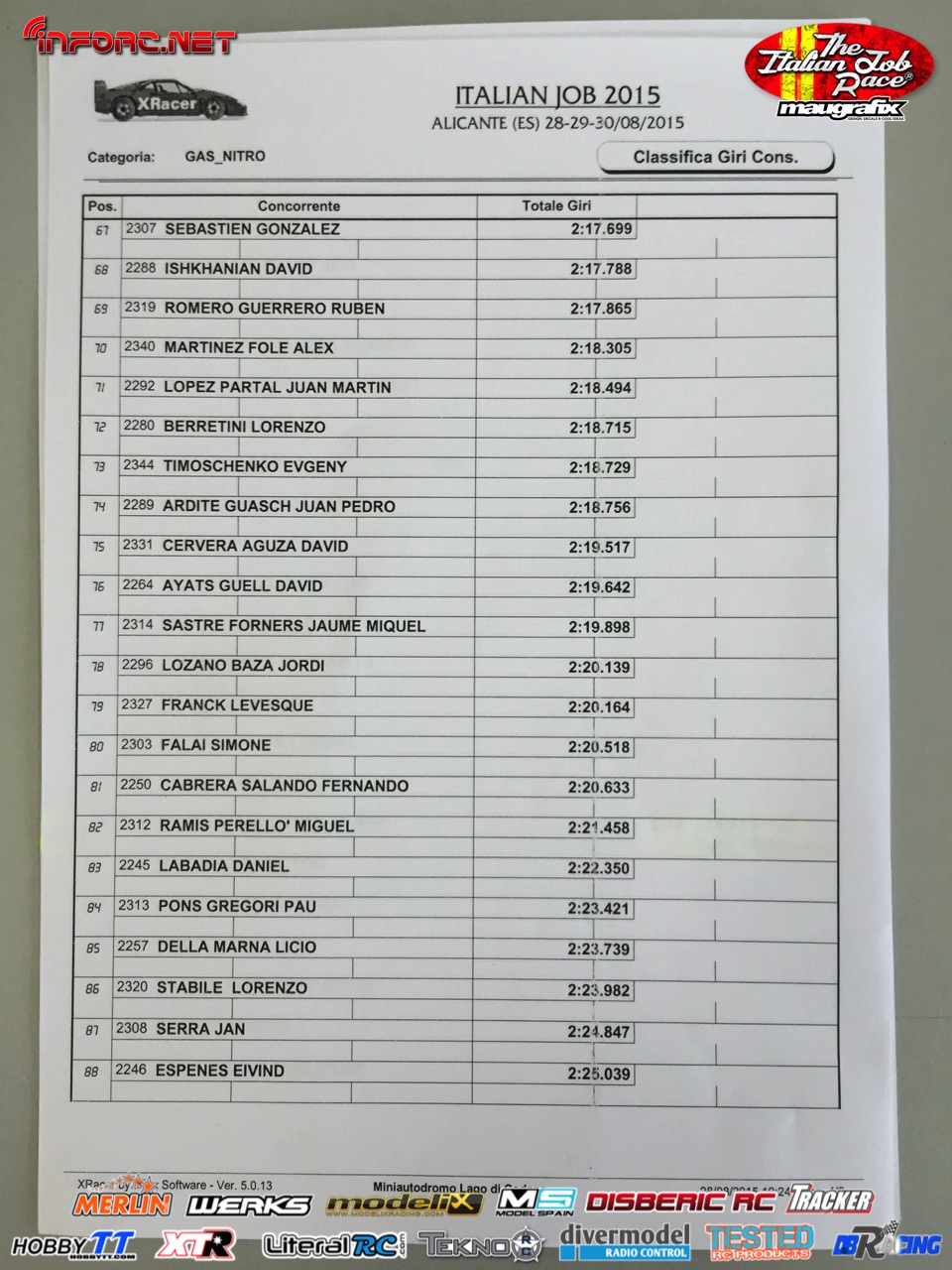 Esta mañana se ha dado el pistoletazo de salida a la carrera internacional más importante que tendrá lugar dentro de nuestras fronteras esta temporada, la Italian Job. En ella se darán cita un total de 200 pilotos entre la modalidad de nitro y eléctrico, todos dispuestos a pasar un estupendo fin de semana en las estupendas instalaciones del Club RC La Nucia, con la organización de esta prestigiosa carrera.