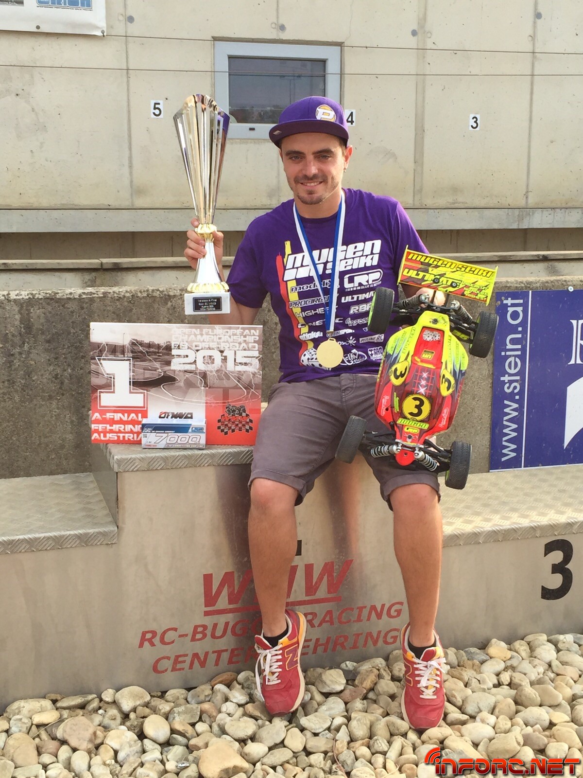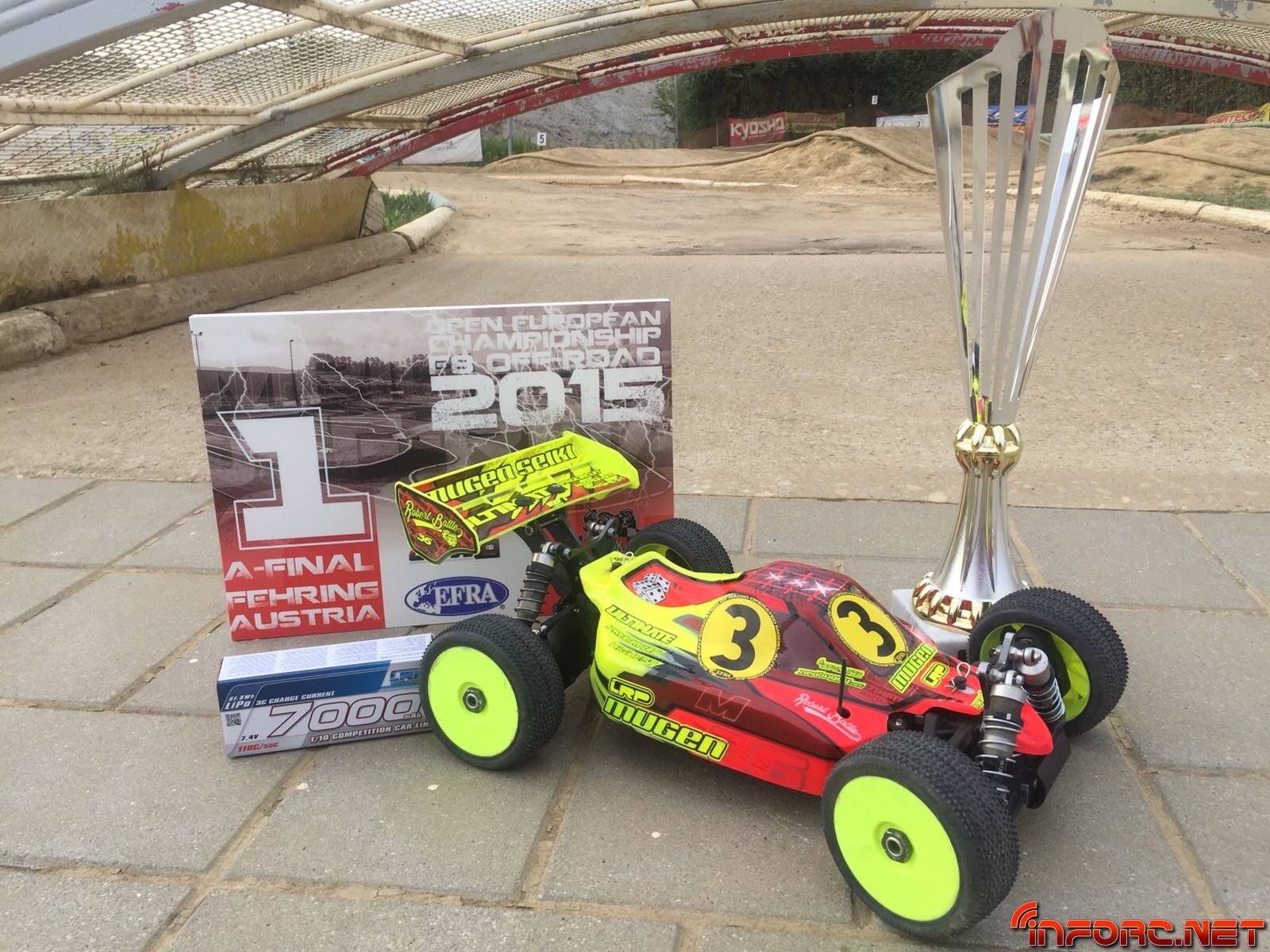 Robert Batlle ha conseguido el primer puesto en el Campeonato de Europa 1/8 TT-E celebrado este fin de semana en Austria. Robert se ha mostrado fuerte todo el evento, consiguiendo el primero en recolocación y en mangas clasificatorias, llevándose finalmente el trofeo a casa ganando la primera y la tercera final. Después de la malísima suerte que acompañó al piloto de Mugen en el Europeo de Nitro, estamos convencidos de que este título supone una necesaria subida de moral para el campeón, que además este año se enfrenta al reto de conseguir su décimo título nacional consecutivo. Unas palabras de Robert:
