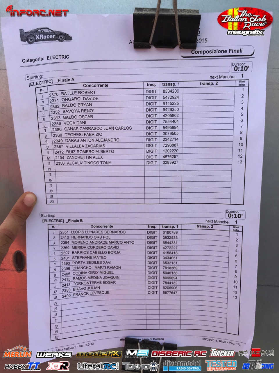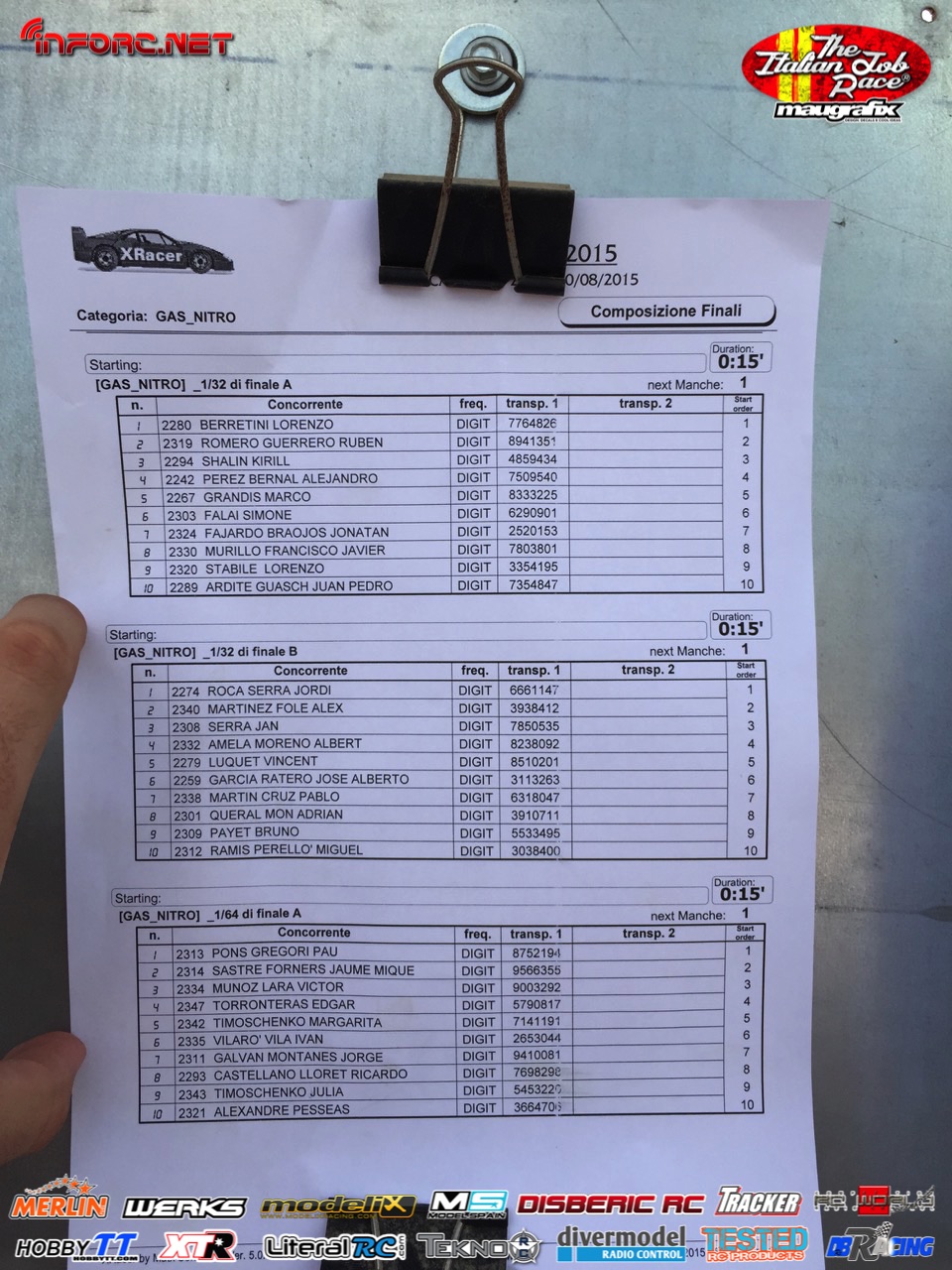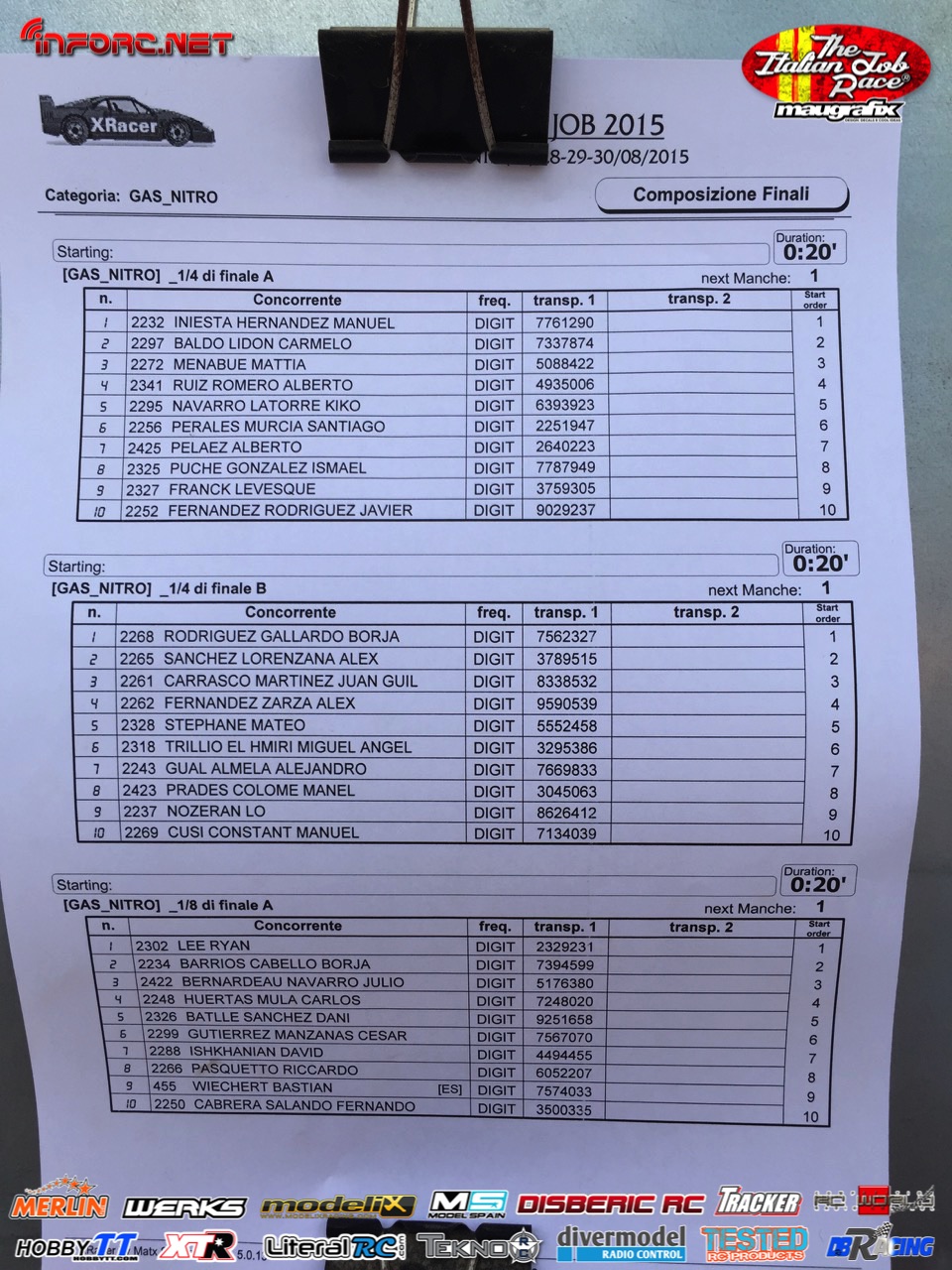 No debemos perder de vista a los hermanos Baldó, con Oscar que ya ganó aquí una prueba del Nacional 1/8 tt gas de este año, Davide Ongaro que está demostrando ser muy rápido en su adaptación a nuevos circuitos, Alex Zanchettin que es otro italiano muy rápido y otros grandes como Savoya, Daras, Vega, Candel o incluso el joven Canas.