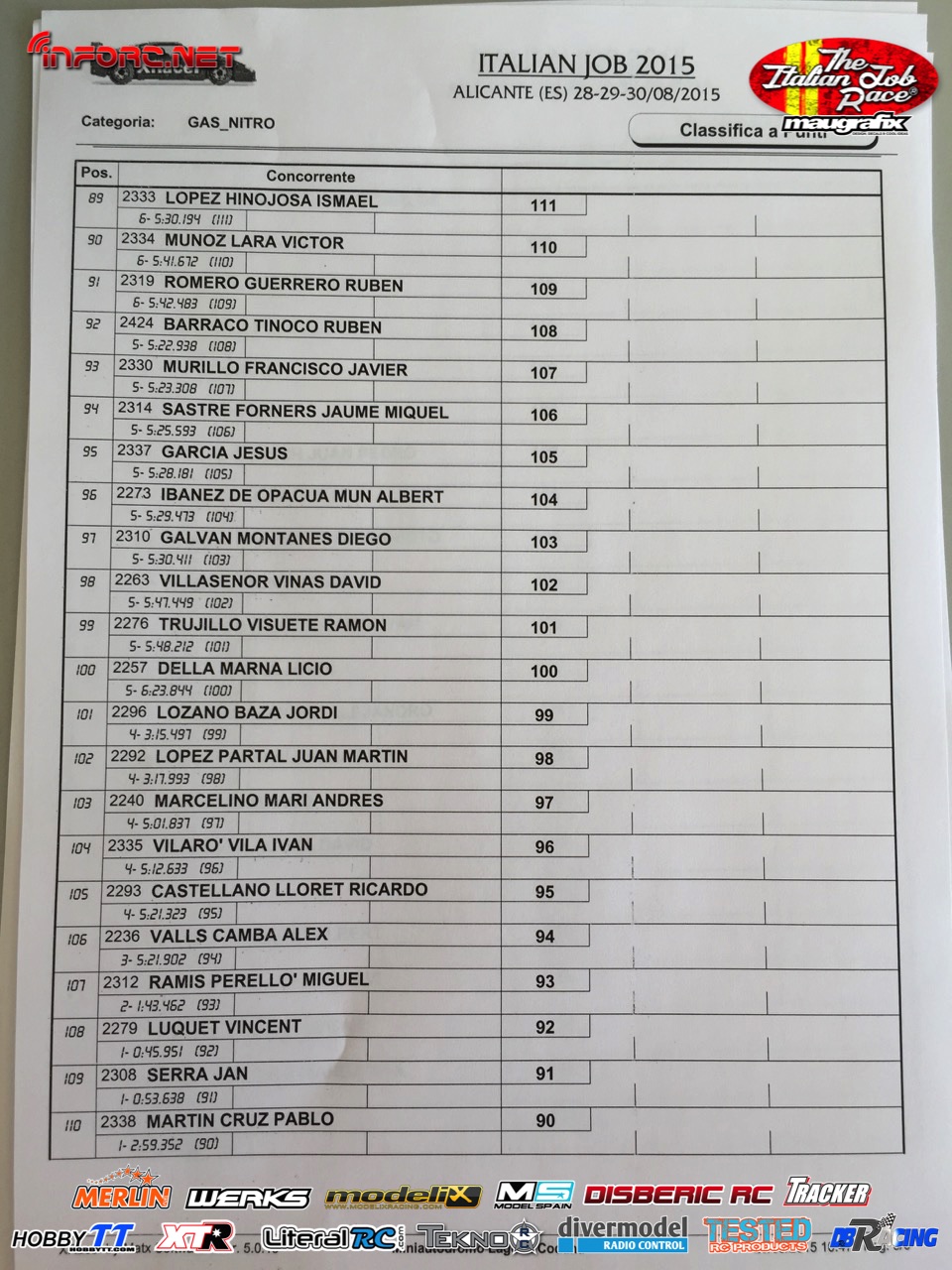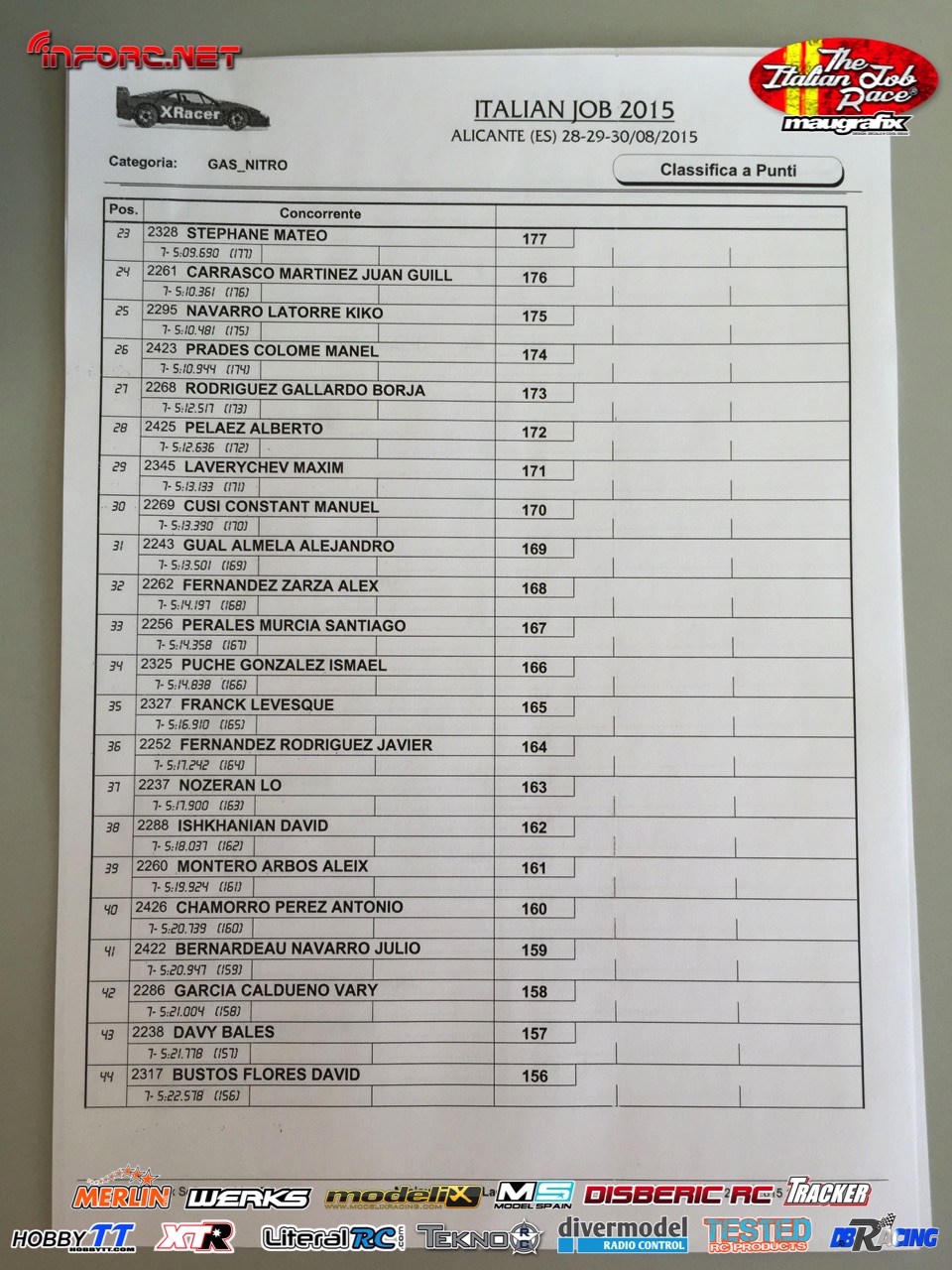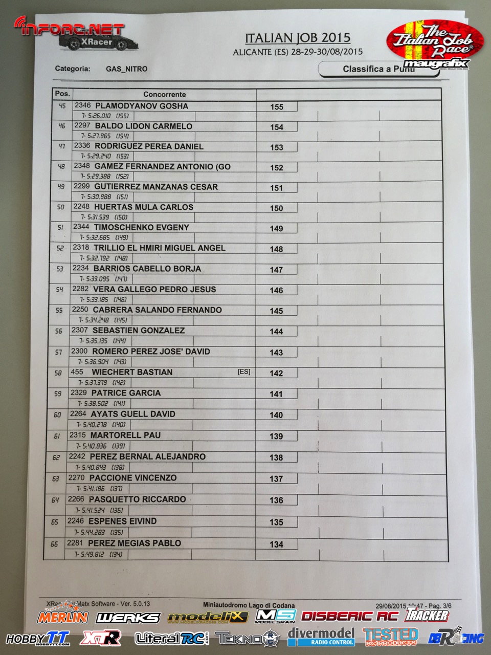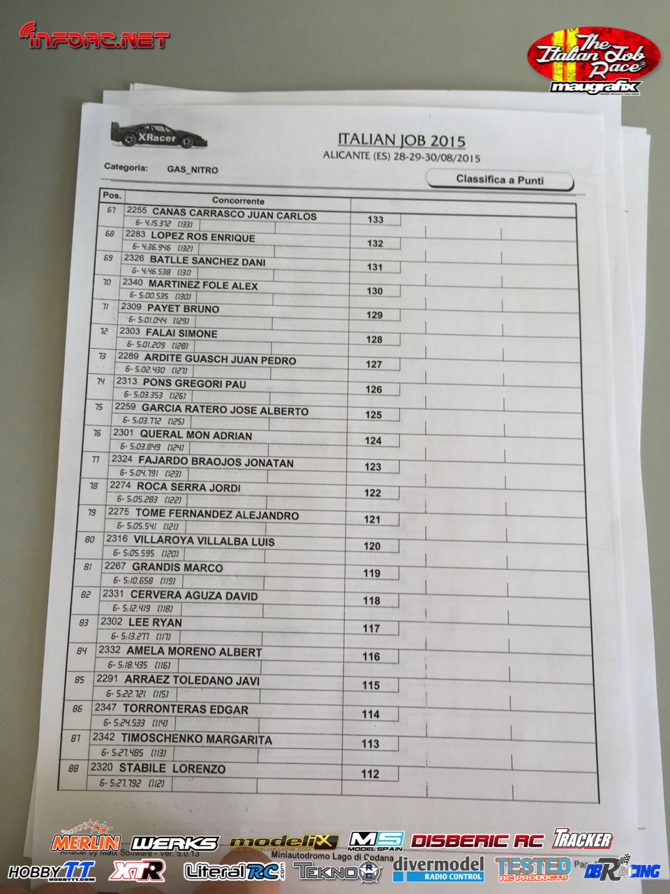 No debemos perder de vista a los hermanos Baldó, con Oscar que ya ganó aquí una prueba del Nacional 1/8 tt gas de este año, Davide Ongaro que está demostrando ser muy rápido en su adaptación a nuevos circuitos, Alex Zanchettin que es otro italiano muy rápido y otros grandes como Savoya, Daras, Vega, Candel o incluso el joven Canas.