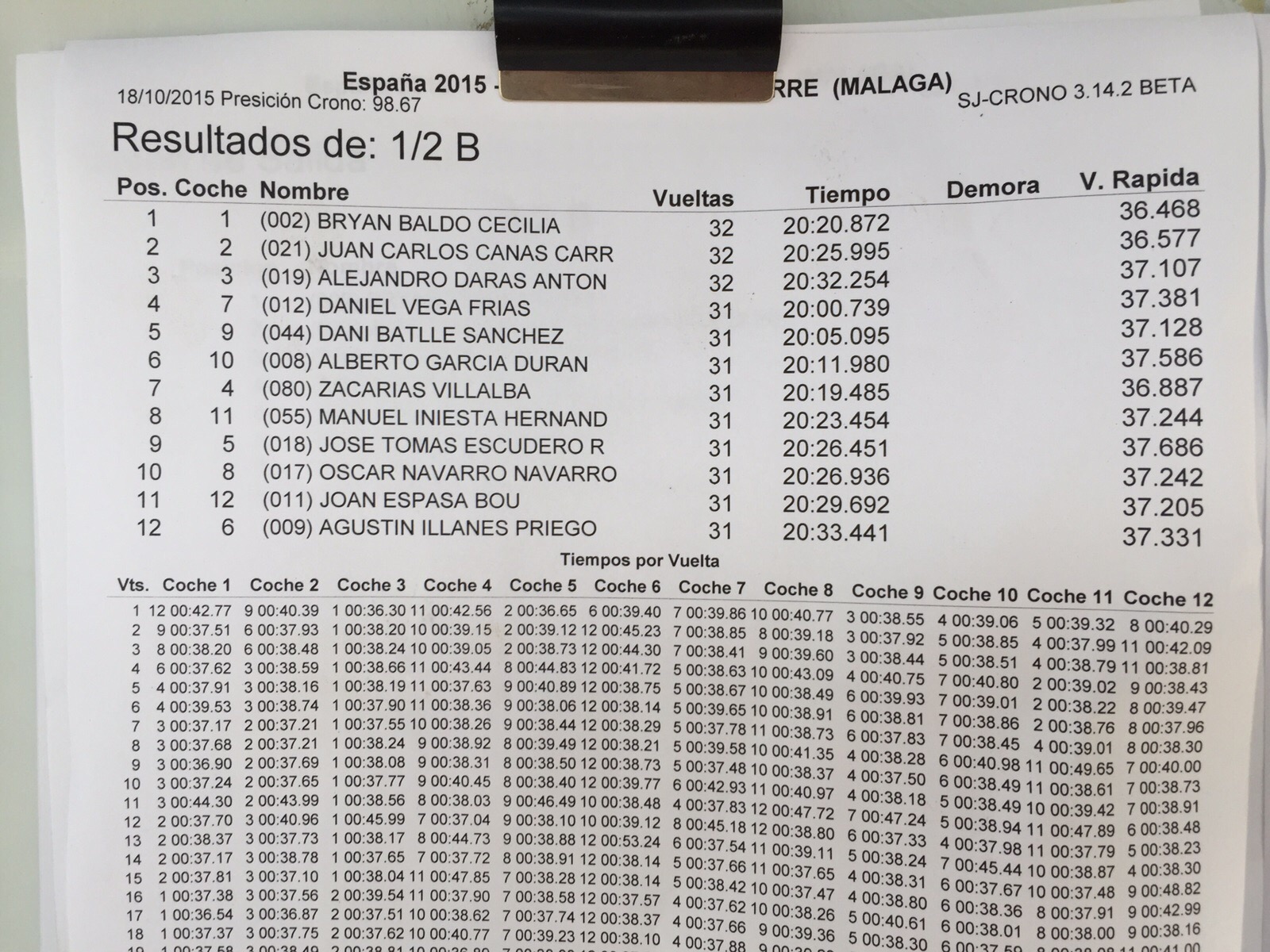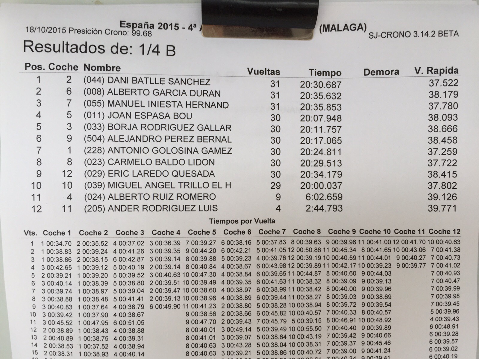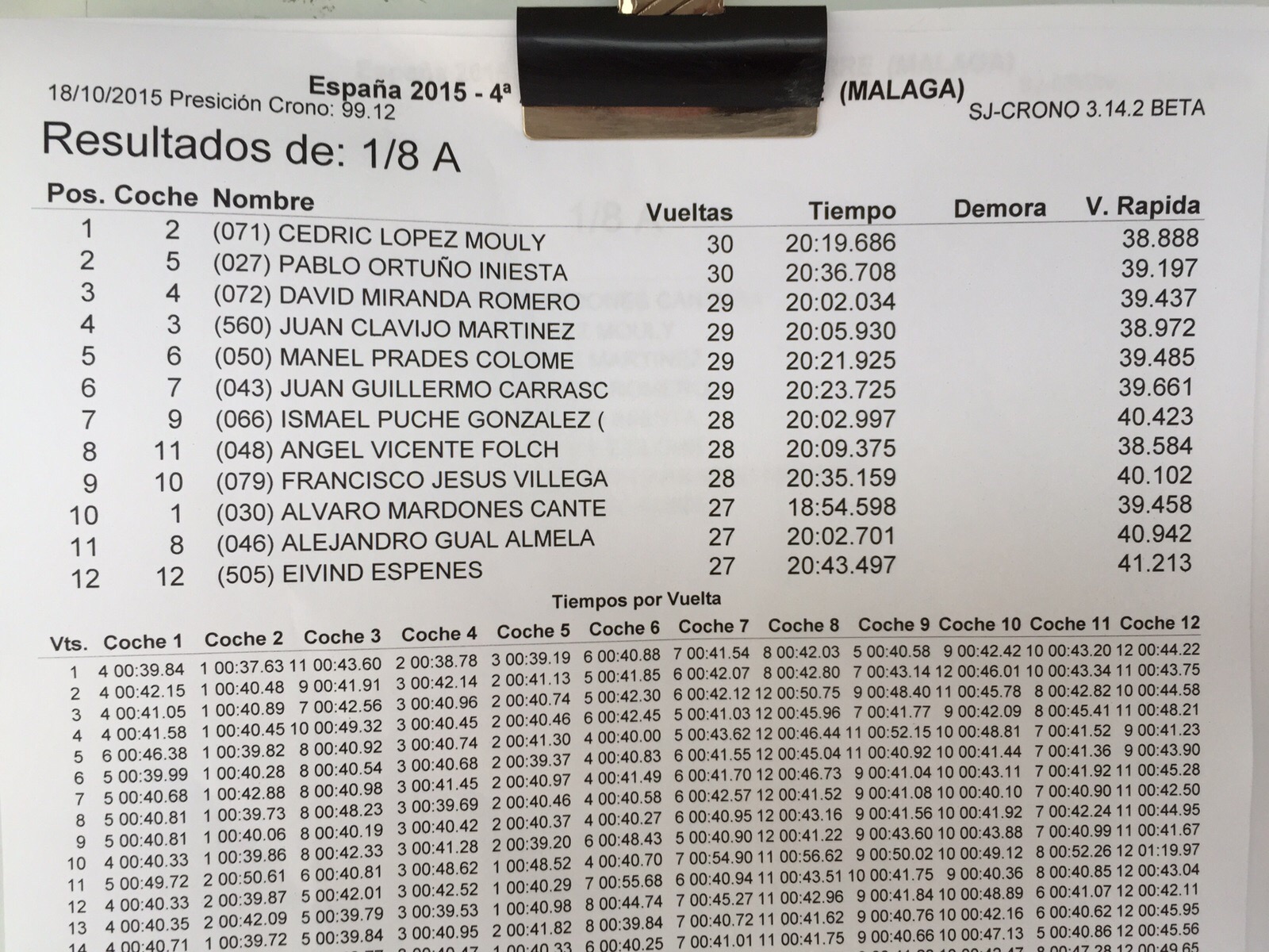 Os dejamos con los tiempos y como siempre, grabaremos el vídeo de la final para ofreceroslo completo y comentado. Al acabar la carrera subiremos el resultado final.