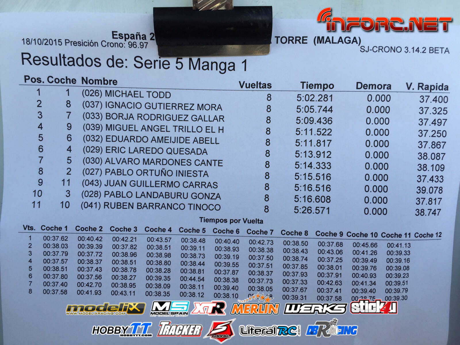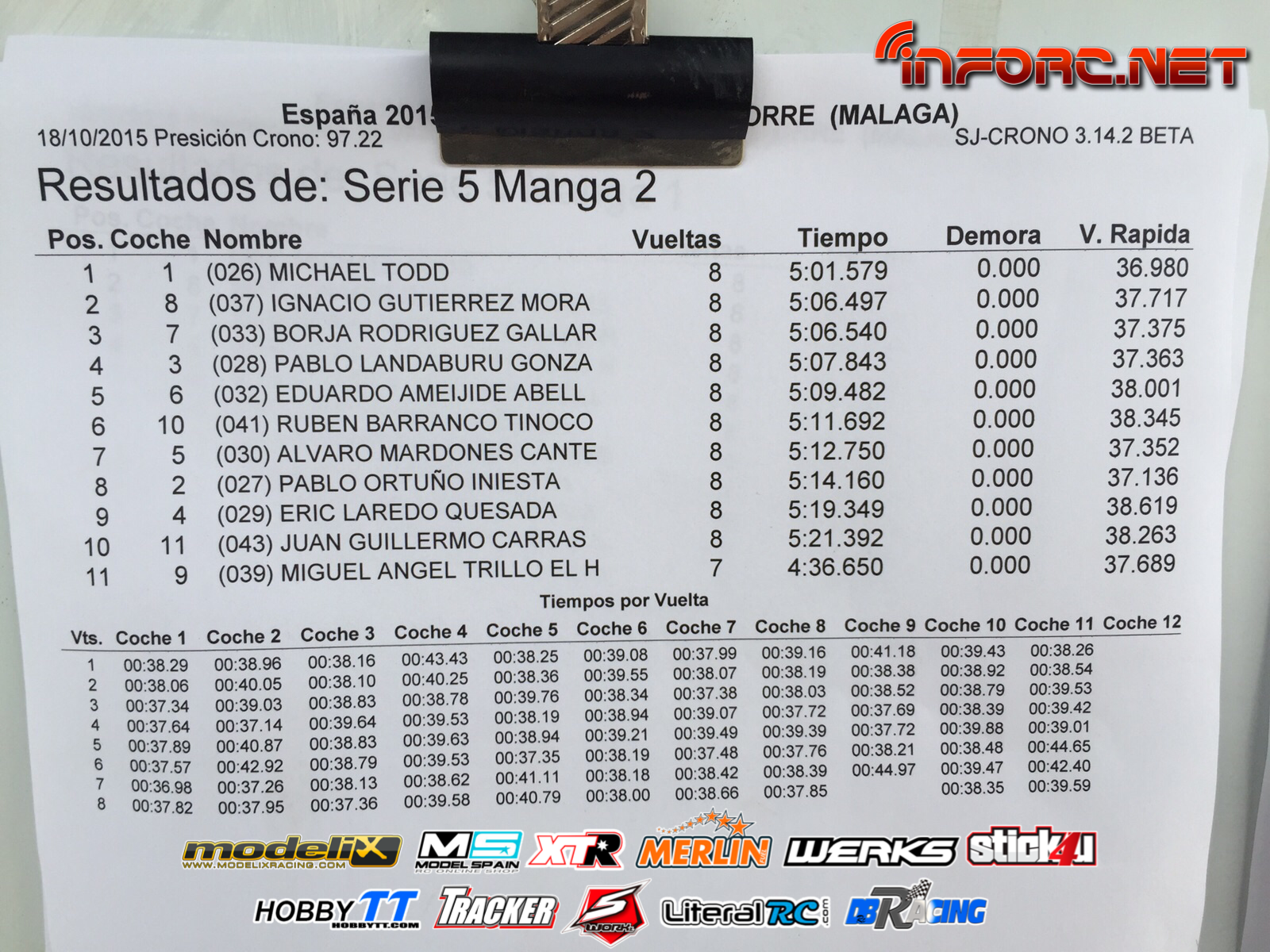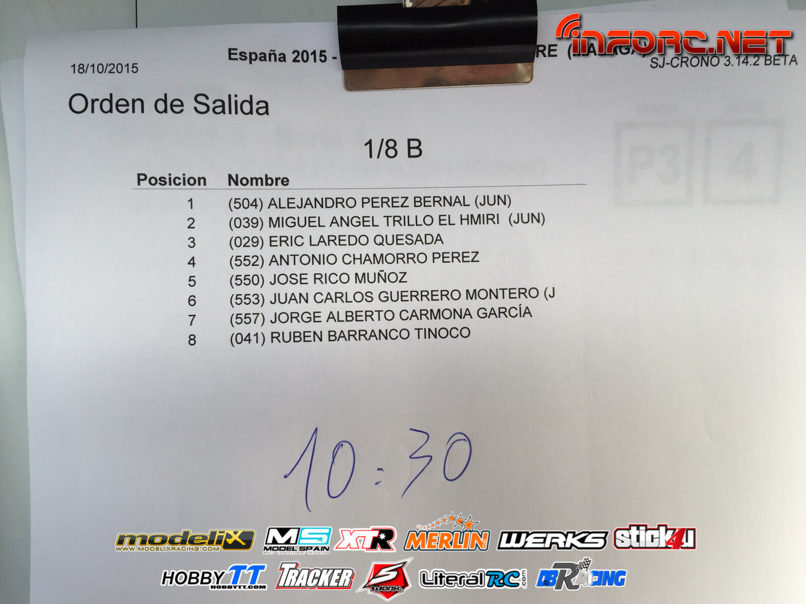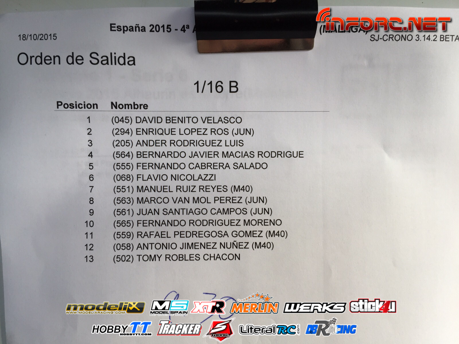 ACTUALIZADO A LAS 15:10 – tiempos de la Q2, en la que Bryan Baldo ha hecho la pole, seguido de Batlle y tercero, Juan Carlos Canas. La climatología en Málaga ha empeorado con un chispeo leve pero constante, que amenaza con convertirse en lluvia intensa durante la noche. Si esto sucediese, las mangas clasificatorias serían cruciales para el resultado final.