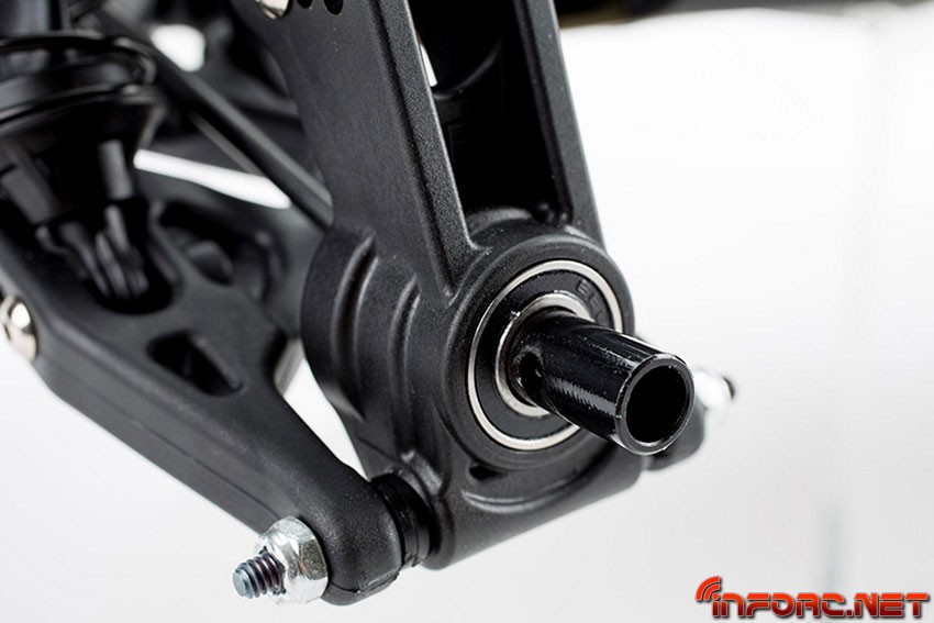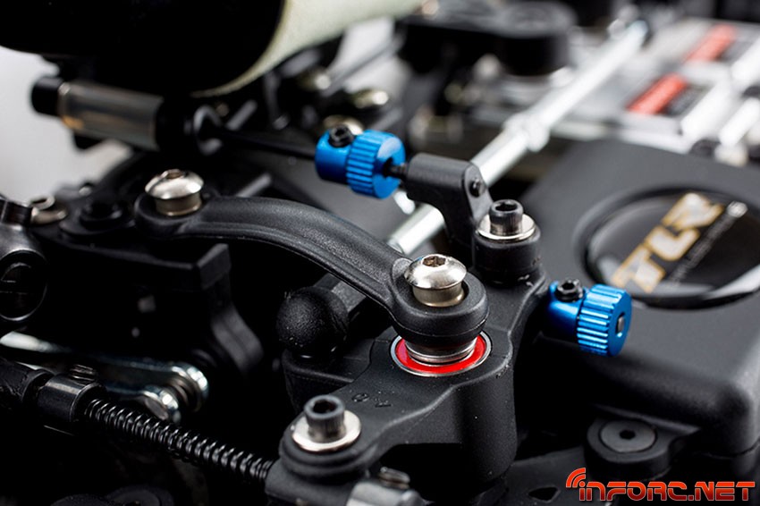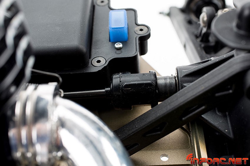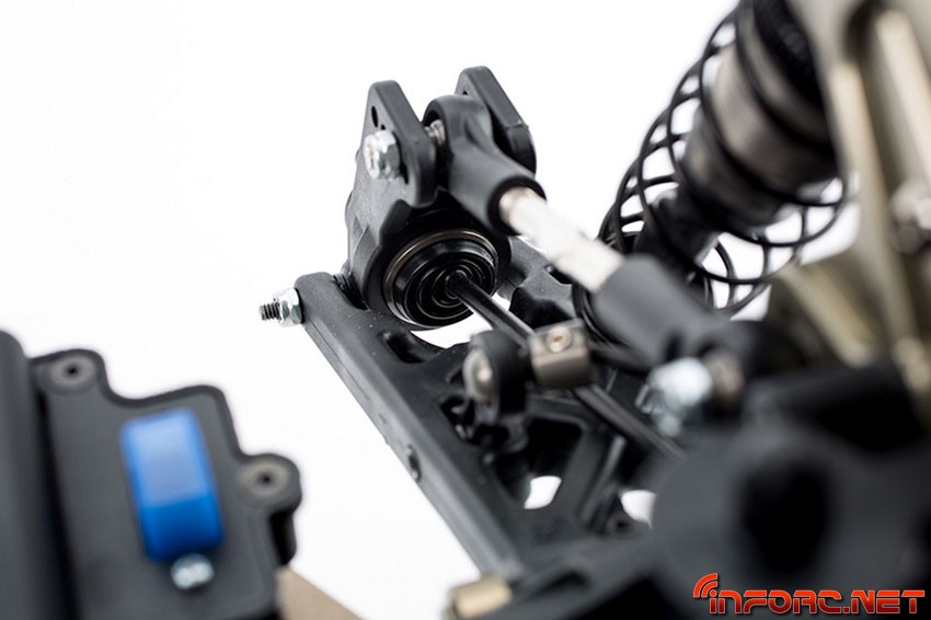 Siguiendo con el motor, la bancada se ha rediseñado para que ahora tenga una mayor superficie de apoyo, reduciendo así la flexión del chasis en los circuitos con mucho agarre. Los nuevos tapones de amortiguador permiten un rellenado más fácil, gracias a su sistema de emulsión y los cardan centrales cuentan ahora con una cobertura de goma que permite engrasarlos y mantenerlos lubricados todo el tiempo.