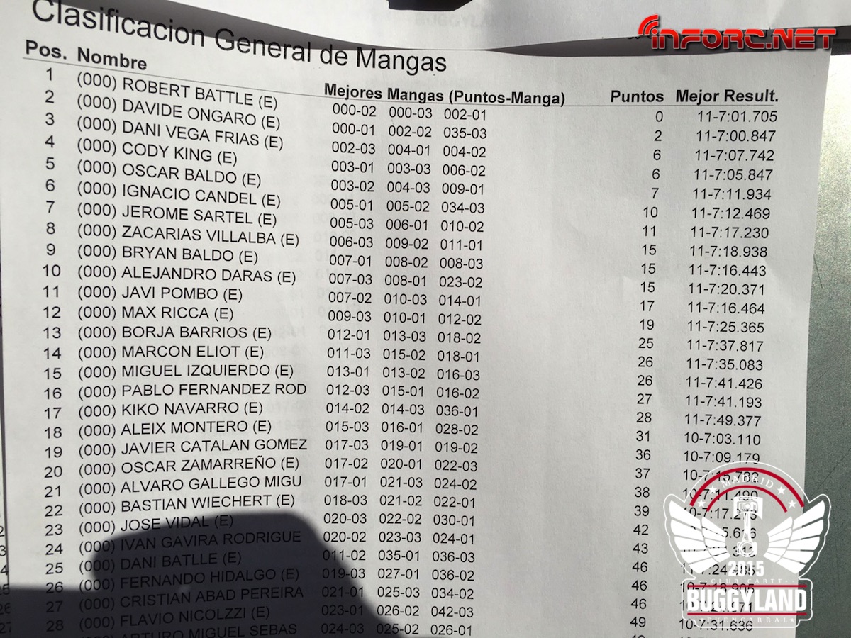 Resultados de las mangas clasificatorias.