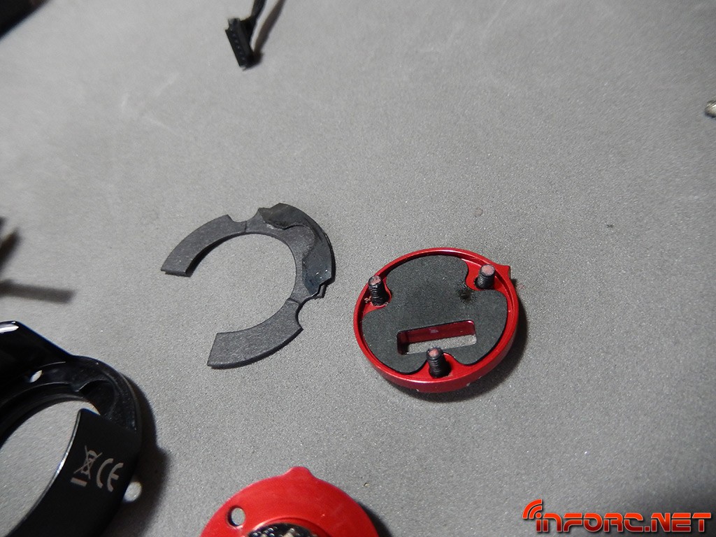 Desmontando la parte de los sensores, podemos ver la pieza en la que se integra el rodamiento. Una parte negativa es que el rodamiento no puede extraerse sin desoldar la placa de sensores. La parte positiva es que al ser un rodamiento más pequeño, acepta más velocidad (rpm) y la degradación es mucho menor. En los motores, la parte que se lleva el grueso de carga es el frontal. Mirando la tapa trasera, vemos otra placa que hace de amortiguador de vibraciones (silentblock).