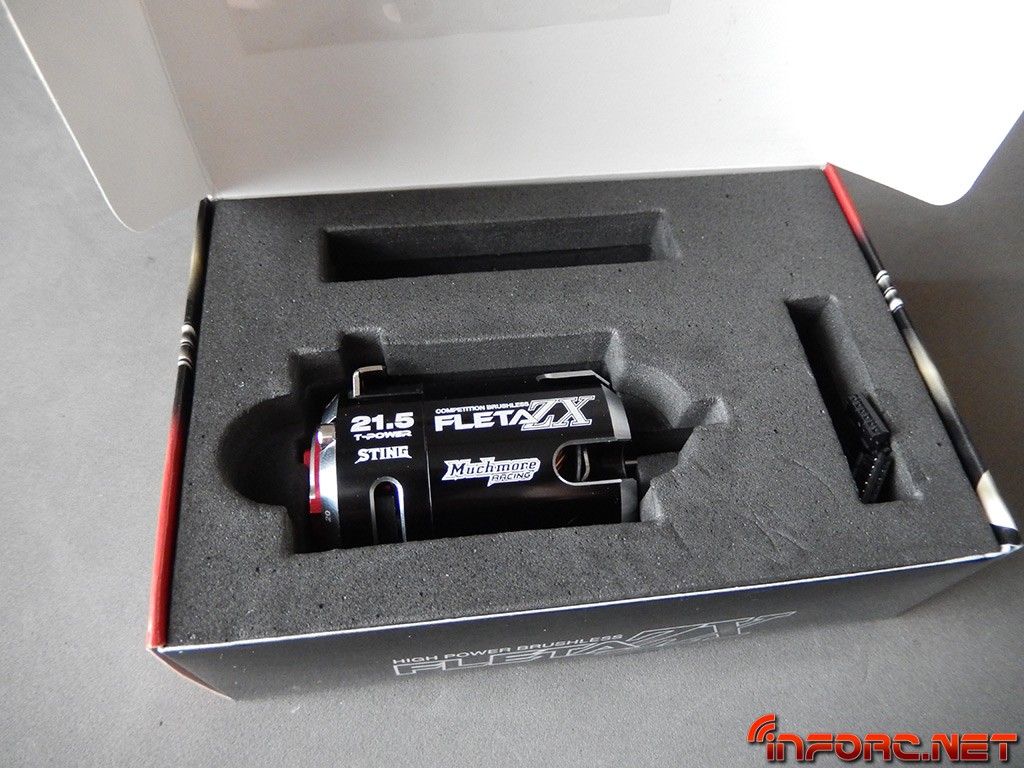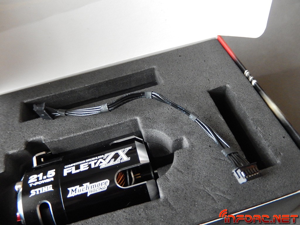 Muchmore nos presenta su motor en una caja muy decorada, en la que puede verse el motor y un listado resumido de las principales características de la serie Fleta ZX. Al abrirlo nos encontramos con una cuidada presentación, con el motor en un hueco a la medida y en el hueco de la parte derecha se encuentra un cable de sensores cortito, de 90mm.