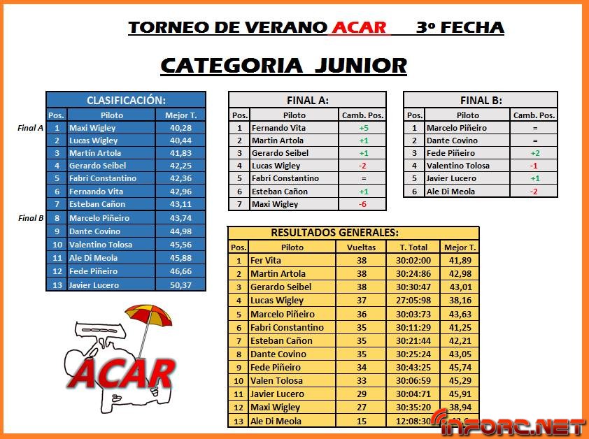 - Podio Junior: 1° Fernando Vita, 2° Martín Artola, 3° Gerardo Seibel