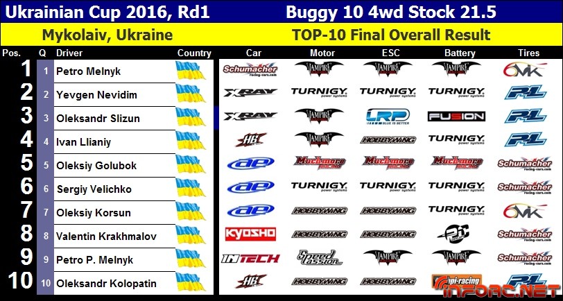Como siempre, Pavlo Melnyk nos mantiene informados de todas las carreras importantes que se celebran en su tierra, Ucrania, enviándonos resumenes y resultados. En esta ocasión se trata de la primera prueba de la Copa de Invierno 2016, celebrada en el circuito de moqueta de Mykolaiv, combinando las modalidades on y off road en un mismo evento.
