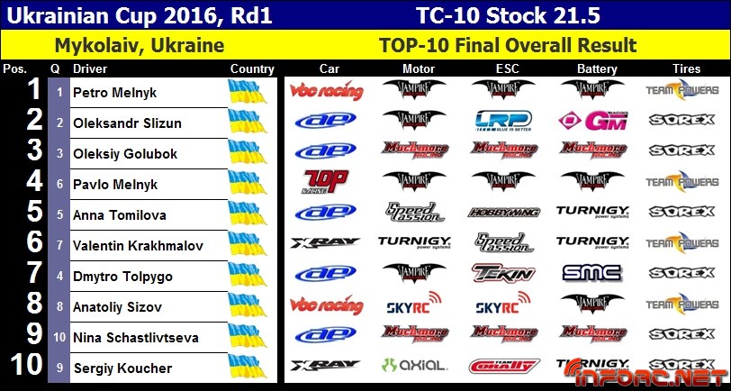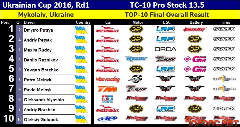 Esta carrera tuvo un total de 150 inscritos de los que a continuación os dejamos los resultados y entre los que se vieron los momentos más competitivos en la final Pro Stock 13.5 y en la final Short Course, una modalidad más extendida en Ucrania que en muchos otros países.