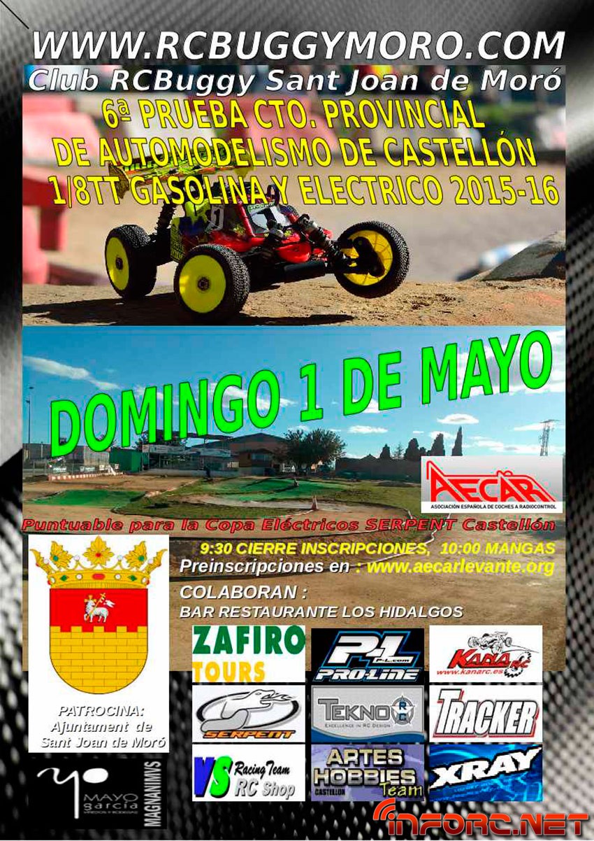 Desde el Club RC Buggy Moro nos remiten el siguiente cartel de carrera. Recuerda que puedes mandarnos las noticias de tu club a noticias@inforc.net