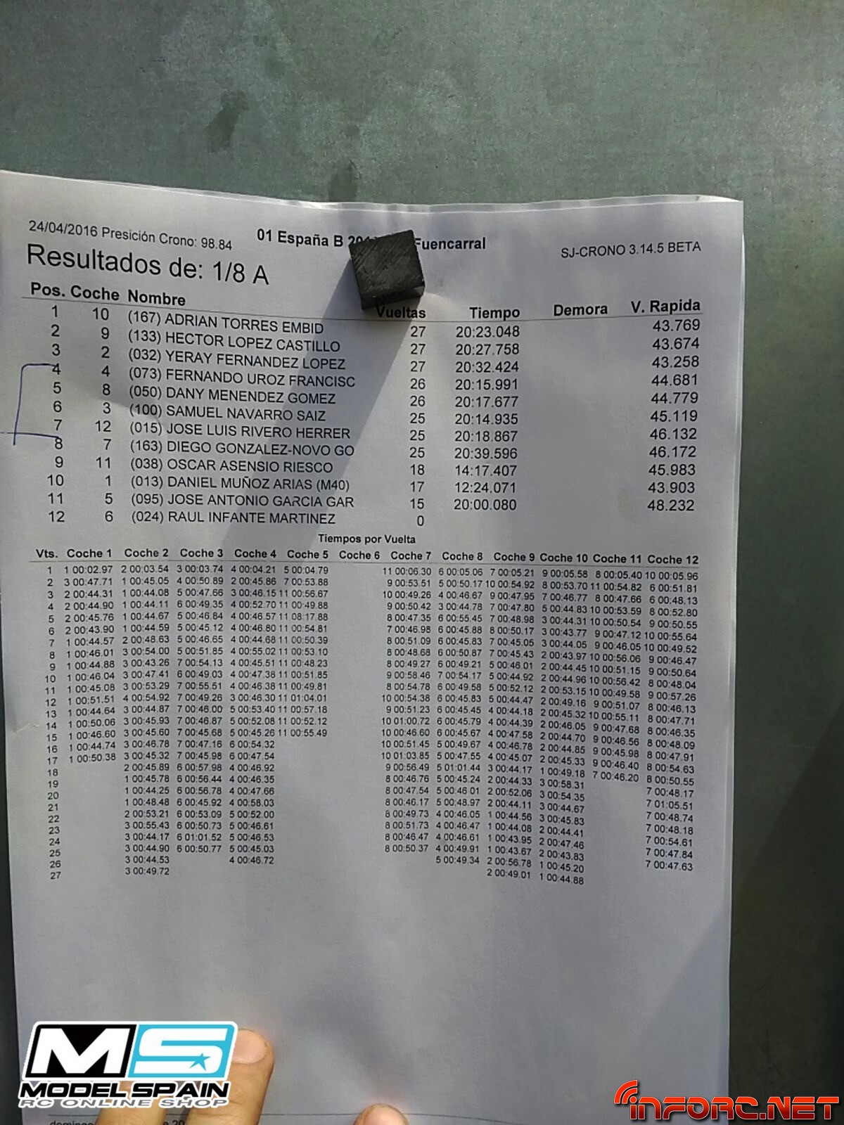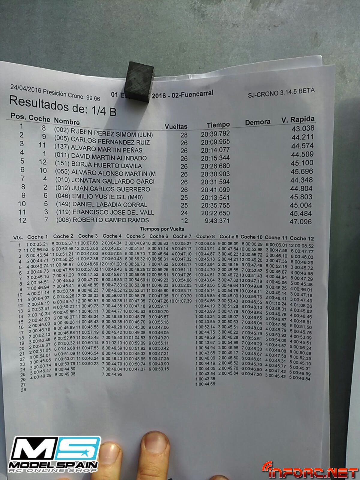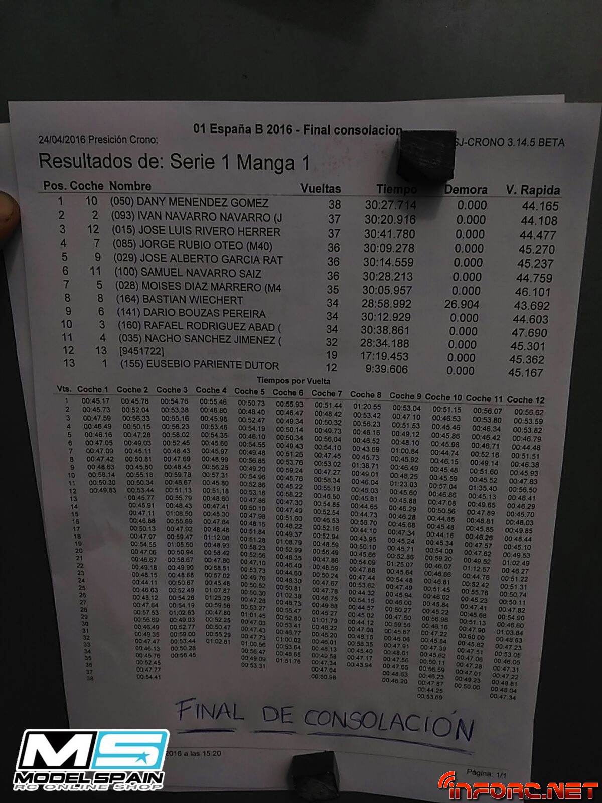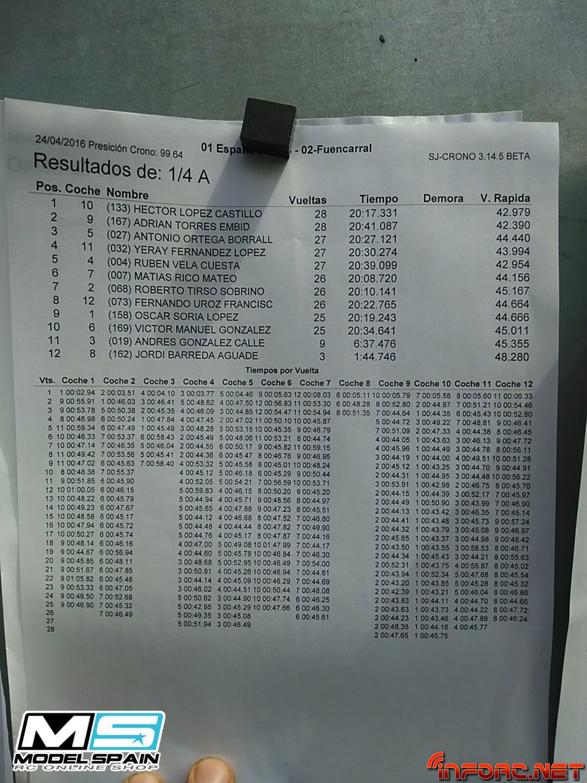 Os dejamos con una galería de imágenes compuesta por las fotos que nos ha mandado nuestro joven reportero Juan Carlos Guerrero que se ha quedado en octavos de final, la organización del Club CarTT y Modelspain, que nos ha mandado los tiempos a pie de pista.