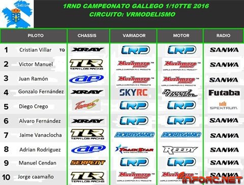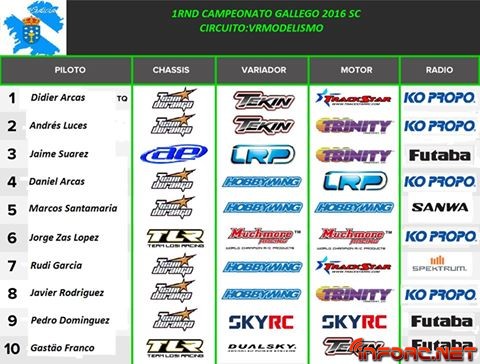 Andrés Luces nos remite esta crónica de la primera prueba del Campeonato Gallego 1/10 TTe. Recuerda que puedes mandarnos las noticias de tu club a noticias@inforc.net