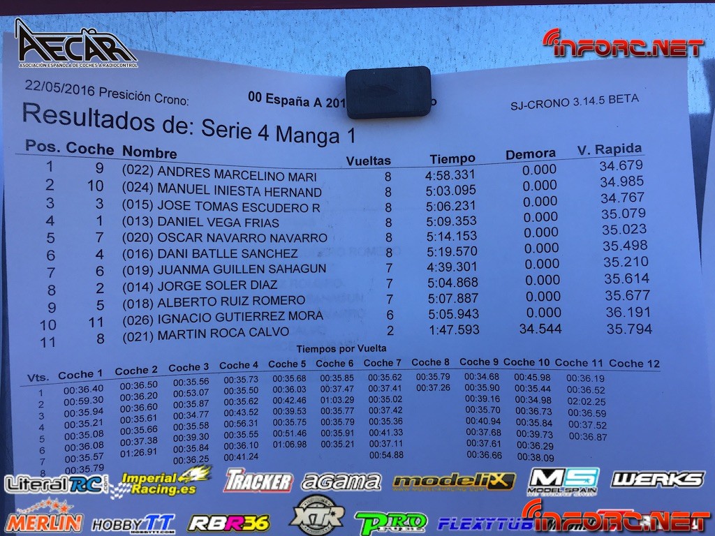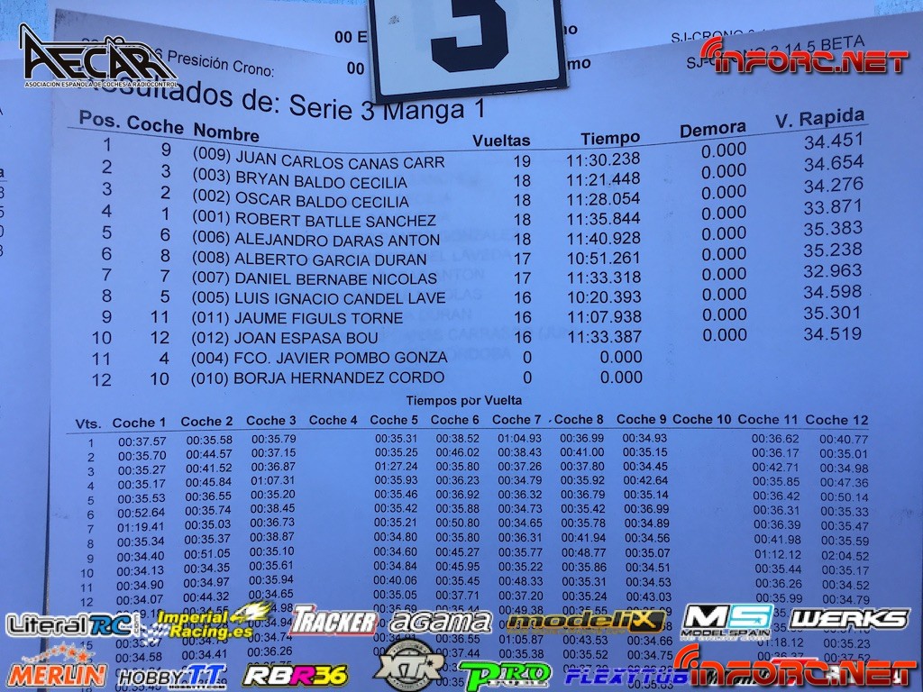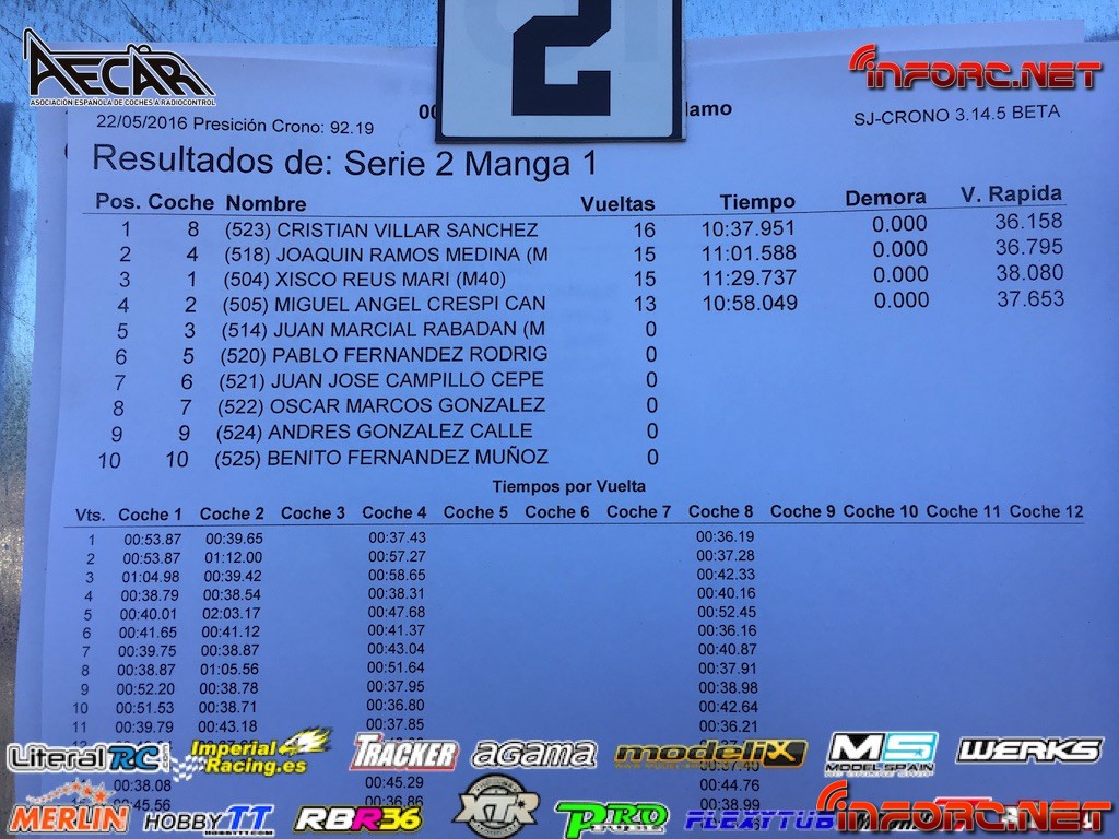 No obstante, la organización ha publicado los tiempos de la última tanda de entrenamientos para que tanto pilotos como asistentes puedan hacerse una idea de la situación actual. Como siempre, insistimos en que los tiempos de entrenamientos no son una fuente fiable como referencia de cara a las mangas clasificatorias, ya que hay paradas para tocar reglajes, carburación y aún faltan algunos pilotos por llegar. Más abajo os dejamos los tiempos.