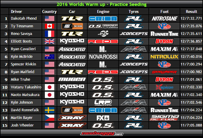 ACTUALIZADO 15:20 – Robert Batlle nos ha aclarado su situación, sorprendente al no verlo en el top 15 de pilotos. Robert ha hecho la pole en 1/8 TT Eco, pero ha tenido problemas en las dos tandas de recolocación, con parada de motor en ambas por falta de combustible, mientras rodaba primero en la primera y rodando tercero en la segunda. Nuestro representante va MUY rápido y si consigue unas buenas mangas, estará donde le corresponde, el problema es que ha caído en unas series donde los pilotos ruedan 3 segundos más lento que él (por vuelta). Seguiremos informando.
