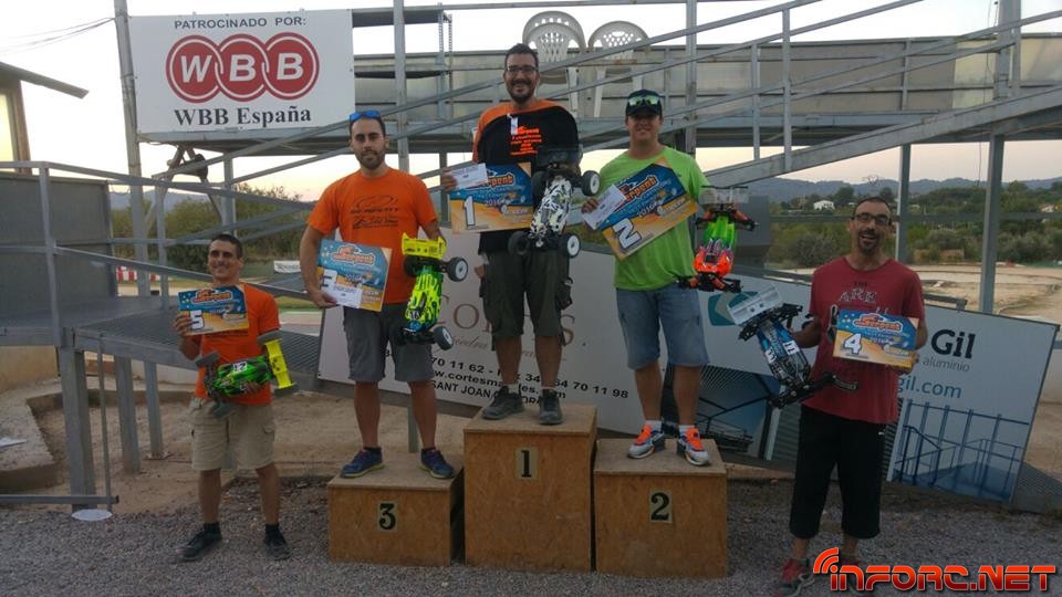 En tercera posición Dani García con Cobra 2.1, que pese a estar una temporada parado ha vuelto con mucha fuerza. En cuarta posición Ricardo Gonzalves que poco a poco se va consolidando. Y Roman Mollet en una meritoria quinta posición, y mas desplazandose cada carrera desde Teruel, Roman ahora corre con un 2.1 pero practicamente ha corrido todo el campeonato con RTR demostrando que es un chasis muy competitivo pese a ser una versión RTR.