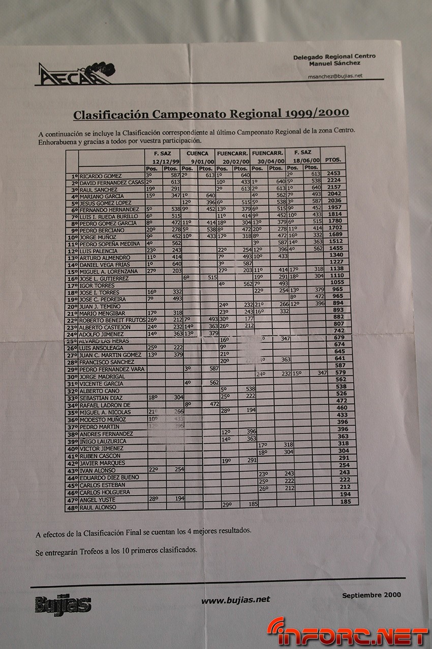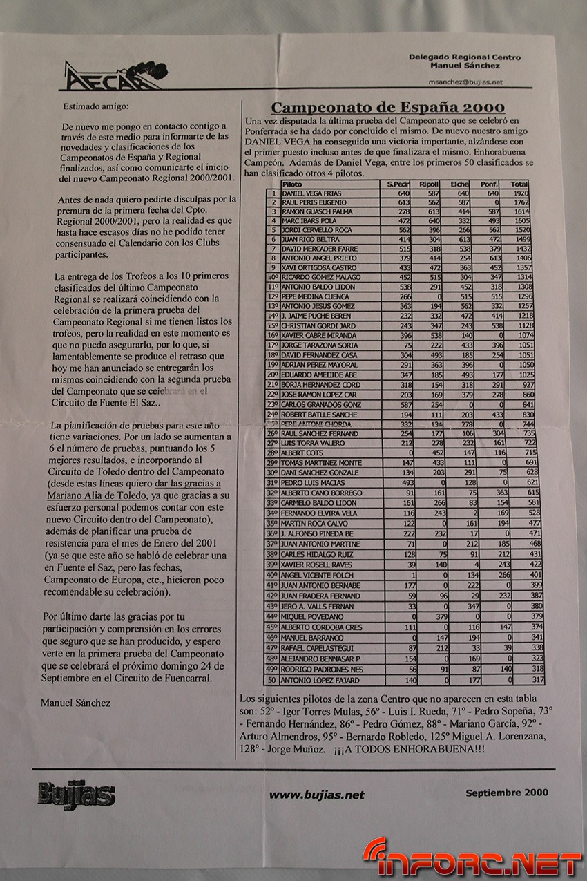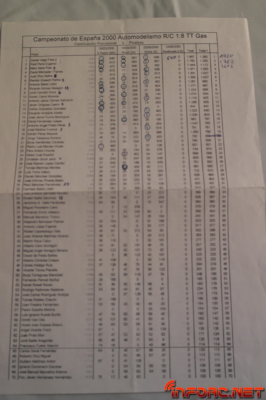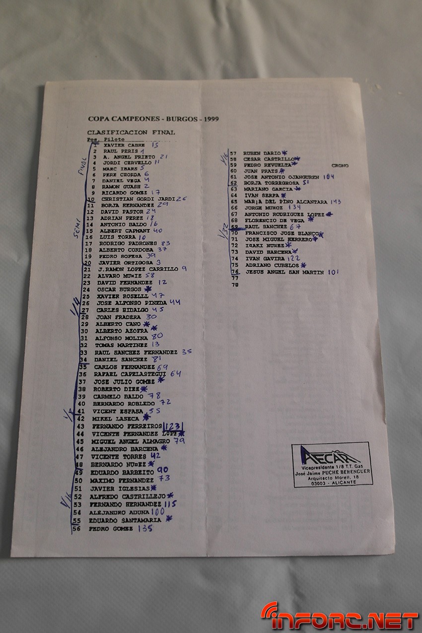 Entre los nombres que pueden encontrarse en las listas de pilotos y clasificaciones se leen muchos conocidos, algunos de ellos actualmente en activo como pilotos y otros, involucrados con el RC de algún modo, sea en labores organizativas o comerciales. Echad un ojo y seguro que encontráis nombres que os suenan o conocéis como Raul Peris, Dani Vega, Marc Ibars, Cristian Gordi, Antonio Baldo (padre de los hermanos Baldó), Jaime Puche…¡Historia viva del RC en España, no os lo perdáis!