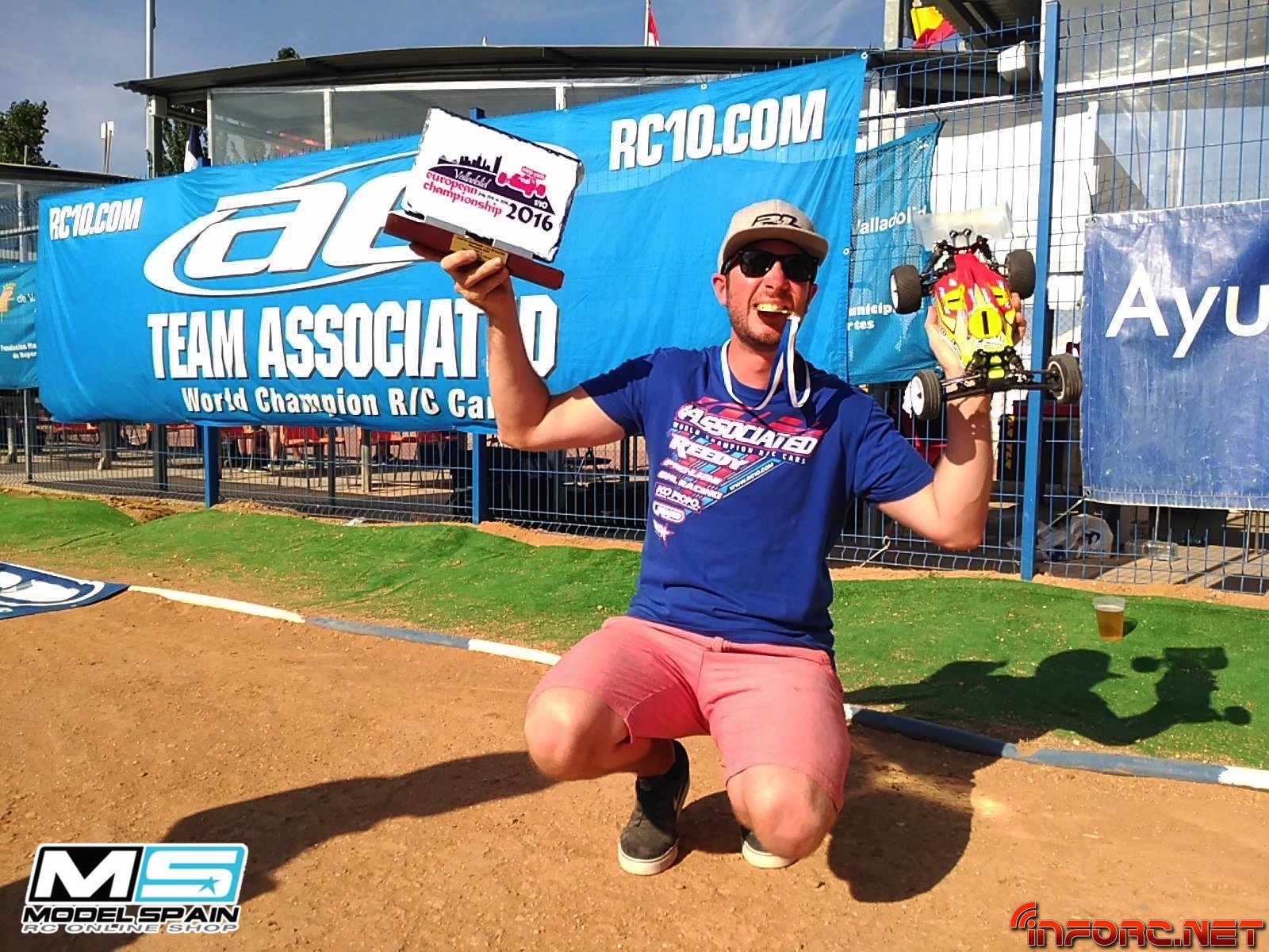 Ya ha finalizado la parte 2WD del Campeonato de Europa 1/10 que se celebra estos días en Valladolid y Neil Cragg y su Asso B6D se han llevado el gato al agua, seguido de Jorn Neumann que finalmente se ha quedado sin su título a pesar del gran comienzo que tuvo en este campeonato con su prototipo de Serpent SRX2. Jorn consiguió la pole en tres de las cinco mangas pero Neil mejoró sus tiempos llevándose la pole absoluta.