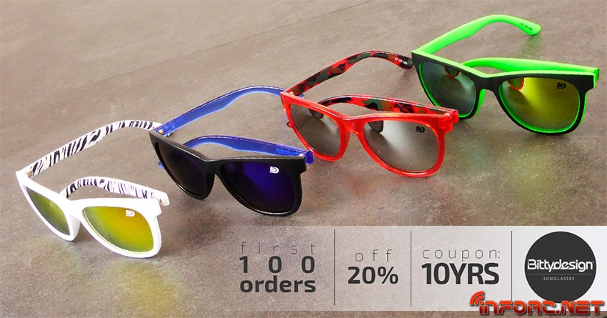 Desde Bittydesign nos informan del lanzamiento de sus nuevas colecciones de gafas Claymore y Venice, el toque de estilo original italiano que todo piloto necesita en los circuitos. Algunos de vosotros disfrutáis ya de las anteriores Claymore, gracias a la colaboración de Bittydesign en el Sorteo anual de Navidad de infoRC.net y si aún no las tienes, aprovecha esta nueva gama con un cupón de 20% de descuento con motivo de la celebración del 10º aniversario de la marca.