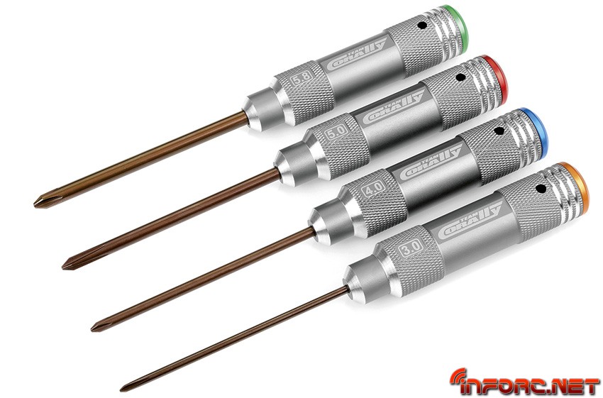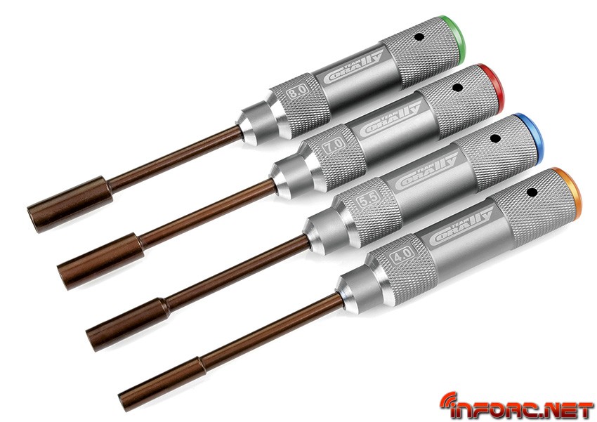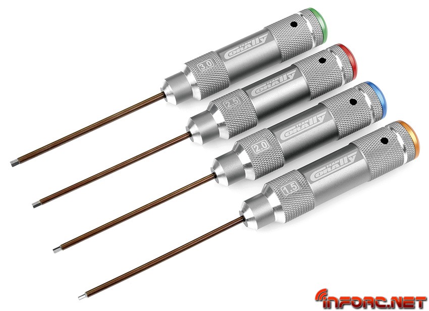 Desde Team Corally nos presentan sus nuevos juegos de herramientas profesionales, diseñadas con material de calidad y pensadas para que sean cómodas y faciliten el mantenimiento de tu equipo radiocontrol. La gama incluye destornilladores planos, estrella, allen y tuercas. Las puntas están fabricadas de acero reforzado para garantizar una buena vida útil. Estas puntas van montadas en un mango aligerado de 22mm de diámetro para una mejor sujeción gracias a su superficie rugosa. Cada herramienta tiene la parte trasera de un color para distinguirlas a primera vista.