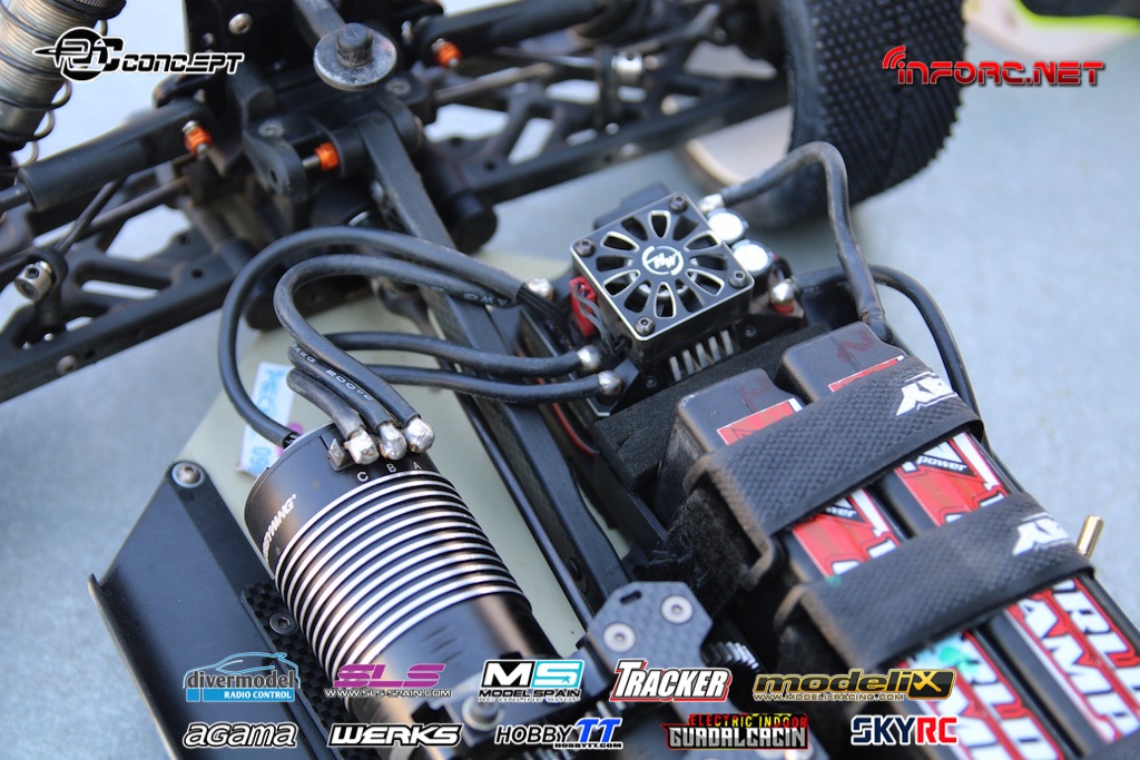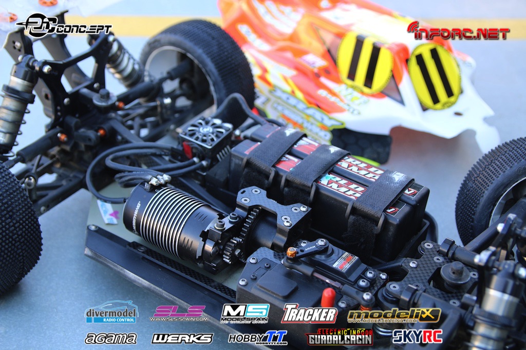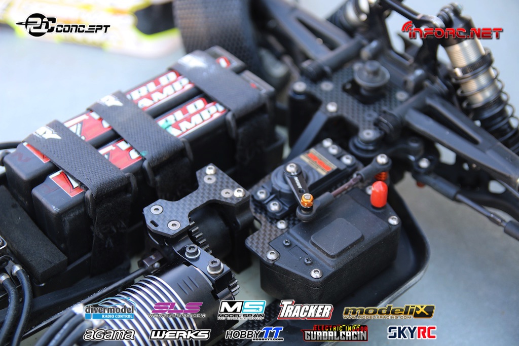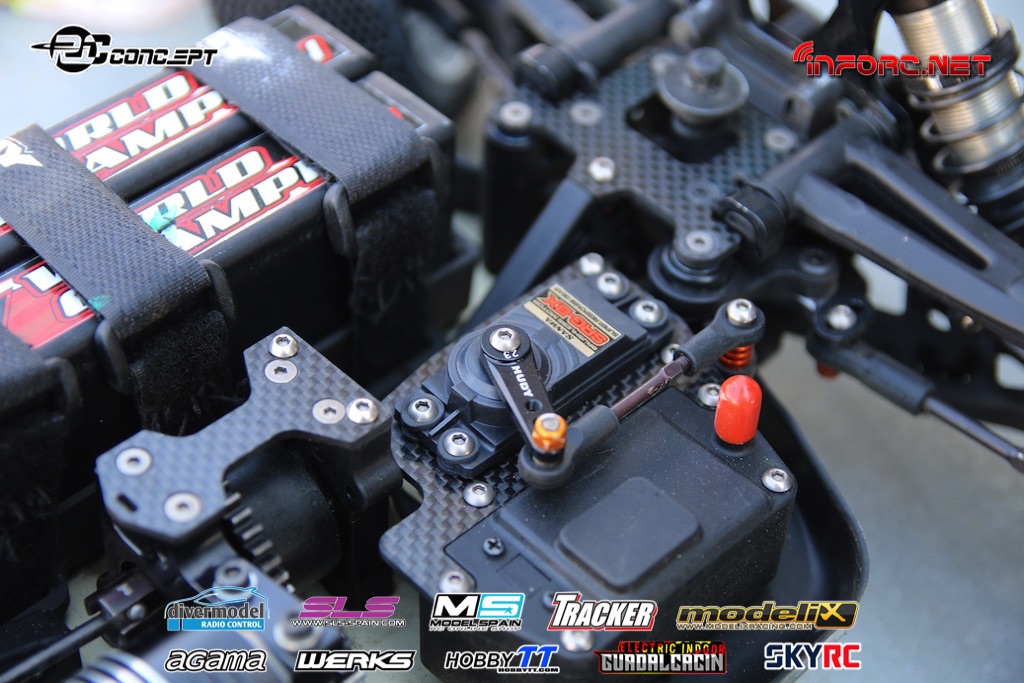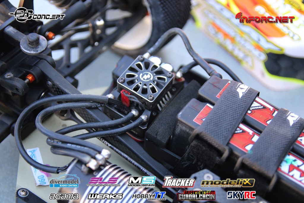 Mientras tanto os vamos trayendo fotos del interior de otros pilotos también muy rápidos como Bruno Coelho, que ha conseguido la segunda posición en la Q1. Bruno es un piloto especializado en pista, aunque también compite en 1/10 eléctrico, por lo que puede que aplique a su coche algunas soluciones aprendidas en otras modalidades, como la bomba de vacío eléctrica en lugar de la manual, para purgar de aire los amortiguadores y diferenciales.