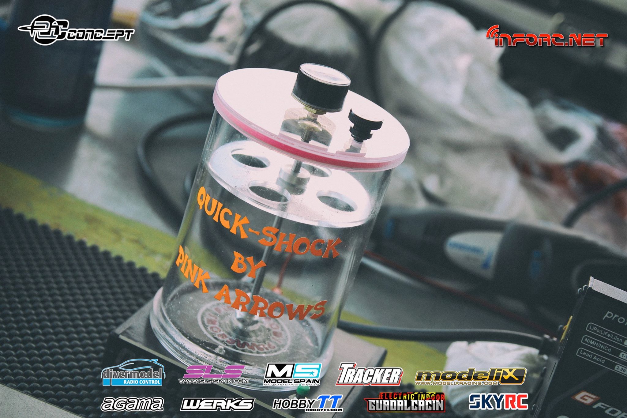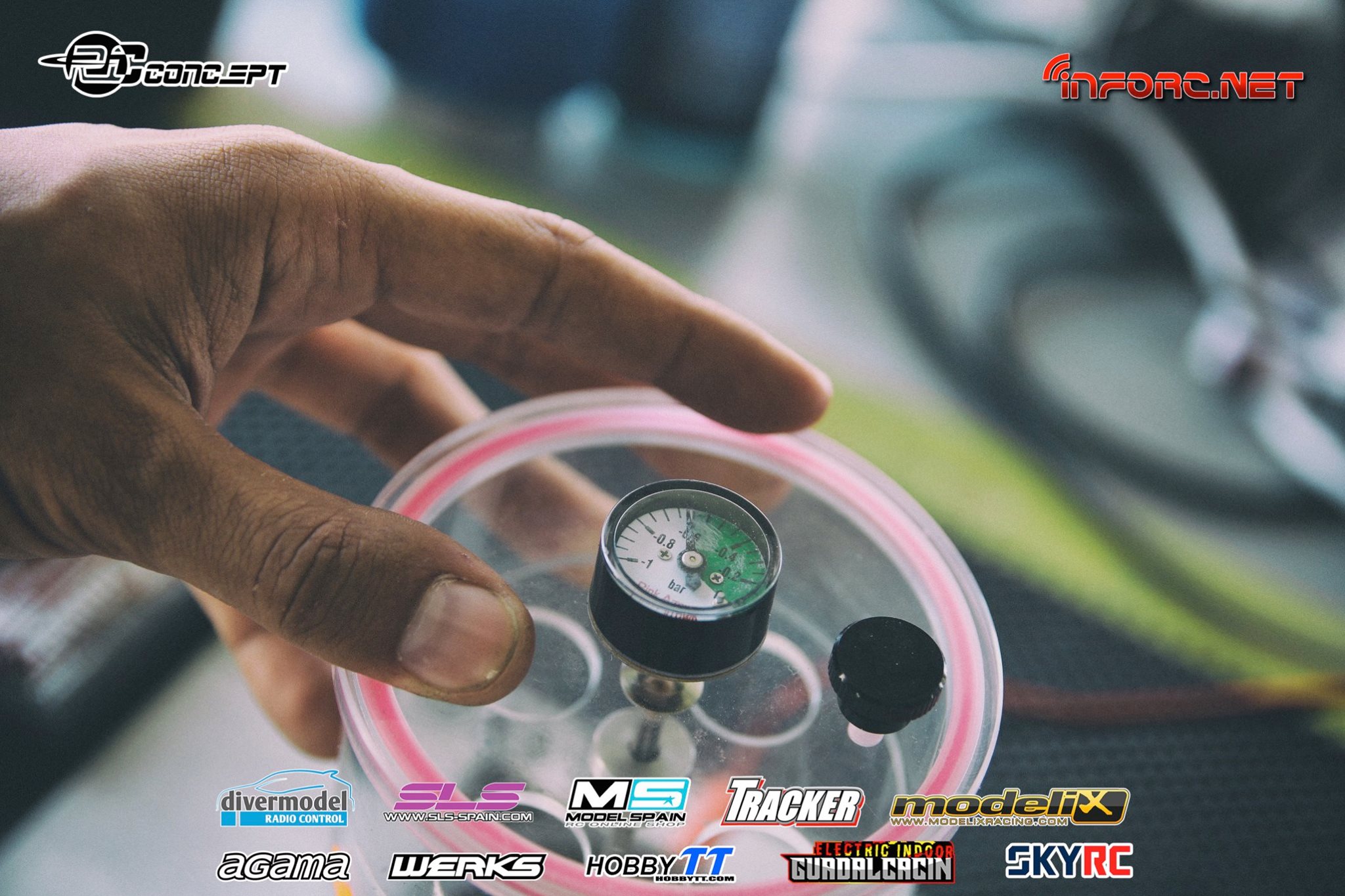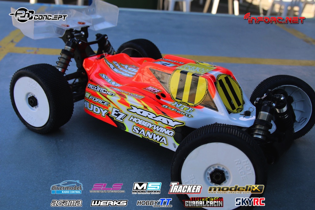 Mientras tanto os vamos trayendo fotos del interior de otros pilotos también muy rápidos como Bruno Coelho, que ha conseguido la segunda posición en la Q1. Bruno es un piloto especializado en pista, aunque también compite en 1/10 eléctrico, por lo que puede que aplique a su coche algunas soluciones aprendidas en otras modalidades, como la bomba de vacío eléctrica en lugar de la manual, para purgar de aire los amortiguadores y diferenciales.