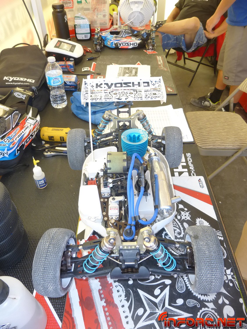 Finalizada la primera manga clasificatoria de la jornada comienzan a cumplirse las predicciones sobre Jared Tebo y su estupenda relación con los circuitos rotos y muy bacheados. El piloto de Kyosho tiene un gran trasfondo de motocross en su haber y sabe cambiar su mentalidad al volante para amoldarse a las imperfecciones de la pista, haciendo que su coche se vea rodar mucho más estable y noble, gracias a su habilidad para localizar las zonas menos agresiva de la trazada.