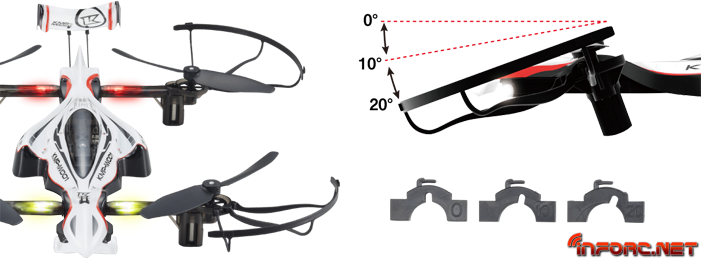 El conjunto equipa además un sistema que permite la variación del ángulo de las helices, pudiendo variarlo entre 0º, 10º o 20º, alterando así el comportamiento del Drone Racer. Con las helices a 0º disfrutaremos de un vuelo más estable, mientras que colocándolas a 20º conseguiremos mayor velocidad, pasando de 30km/h a 34,5kmh en el modo de mayor inclinación. Sin duda una aproximación interesante al mundo de las carreras de drones por parte de Kyosho y que facilitará a más pilotos la entrada en este mundillo. Os dejamos con el vídeo promocional de la marca, protagonizado por el ingeniero product manager de la familia Mini-Z y el director de marketing de Kyosho, Tajima.