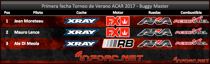 La final Master/Pro (ambas categorías corrieron juntas) fue coronada con la victoria del piloto pro Nicolás Bregante, seguido por el debutante en Pro Matías Lence (quien a pesar del cansancio y la preocupación de organizar el evento logró un manejo impecable digno de esa categoría), y en 3º posición se encuentra el piloto Master Jean Moreteau con un manejo también excelente, en el cual un motor mal carburado y una posterior parada motor le impidió alcanzar a sus contrincantes.