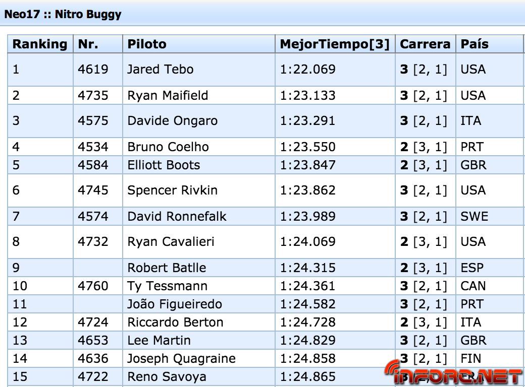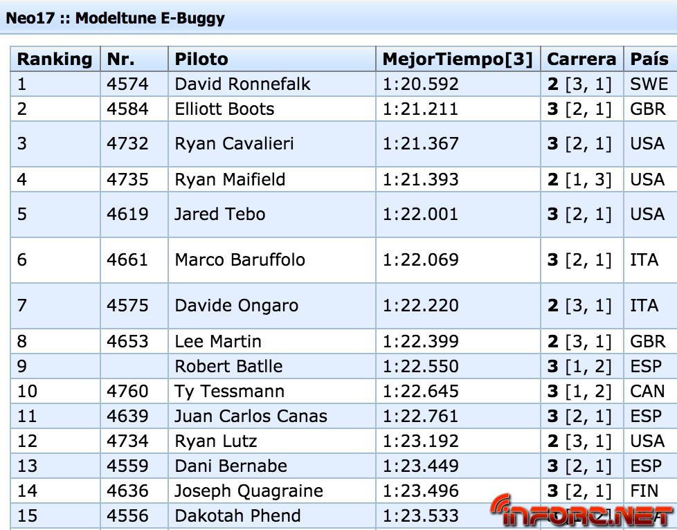 Sin duda, esta gran igualdad entre los asistentes hará que el evento este año sea mucho más divertido y estará más disputado hasta el último momento, así que estamos deseando ver cómo evoluciona la jornada de mangas de mañana. Mientras tanto, os dejamos con el listado de pilotos nacionales y sus posiciones en nitro y eco.