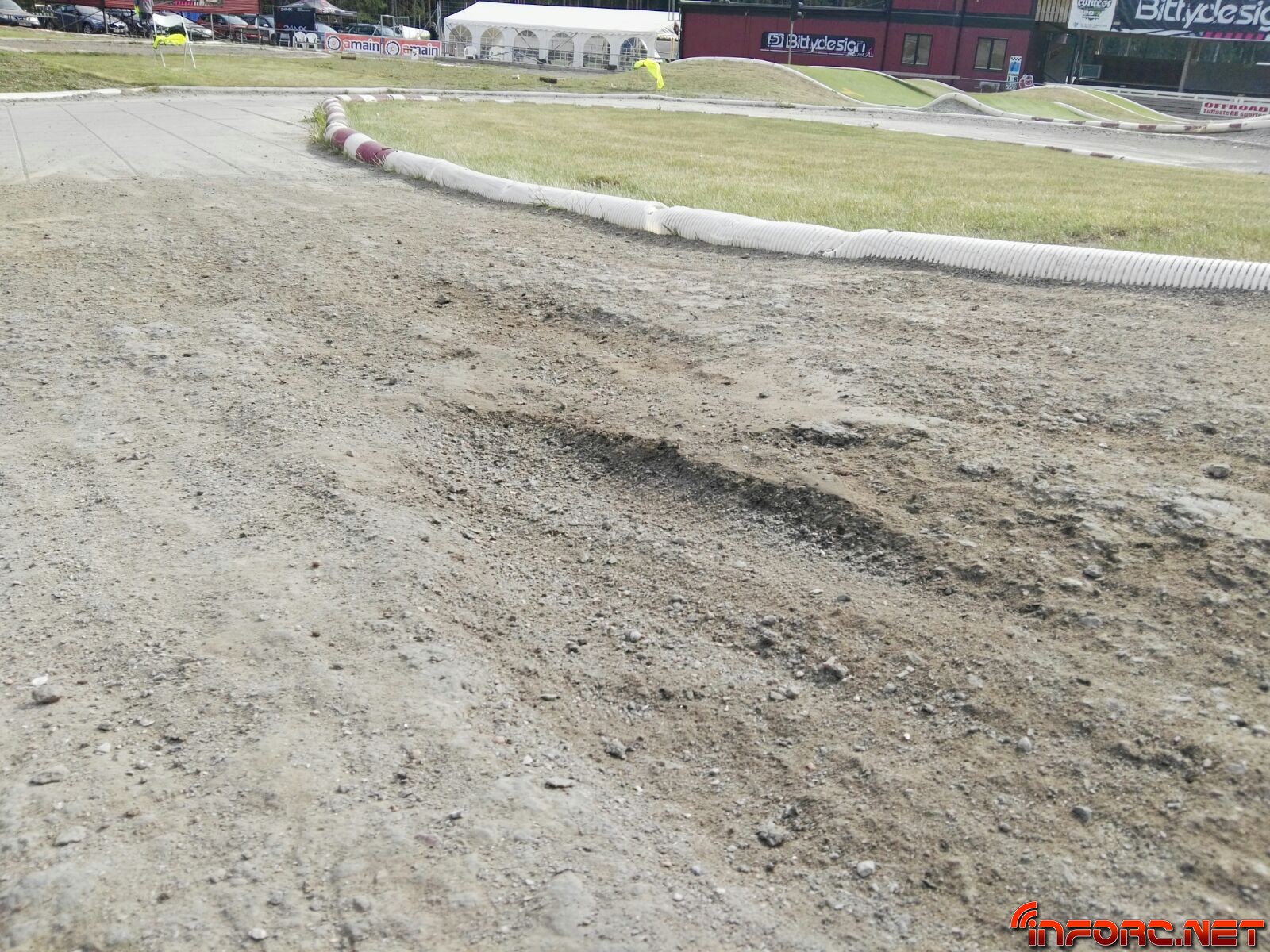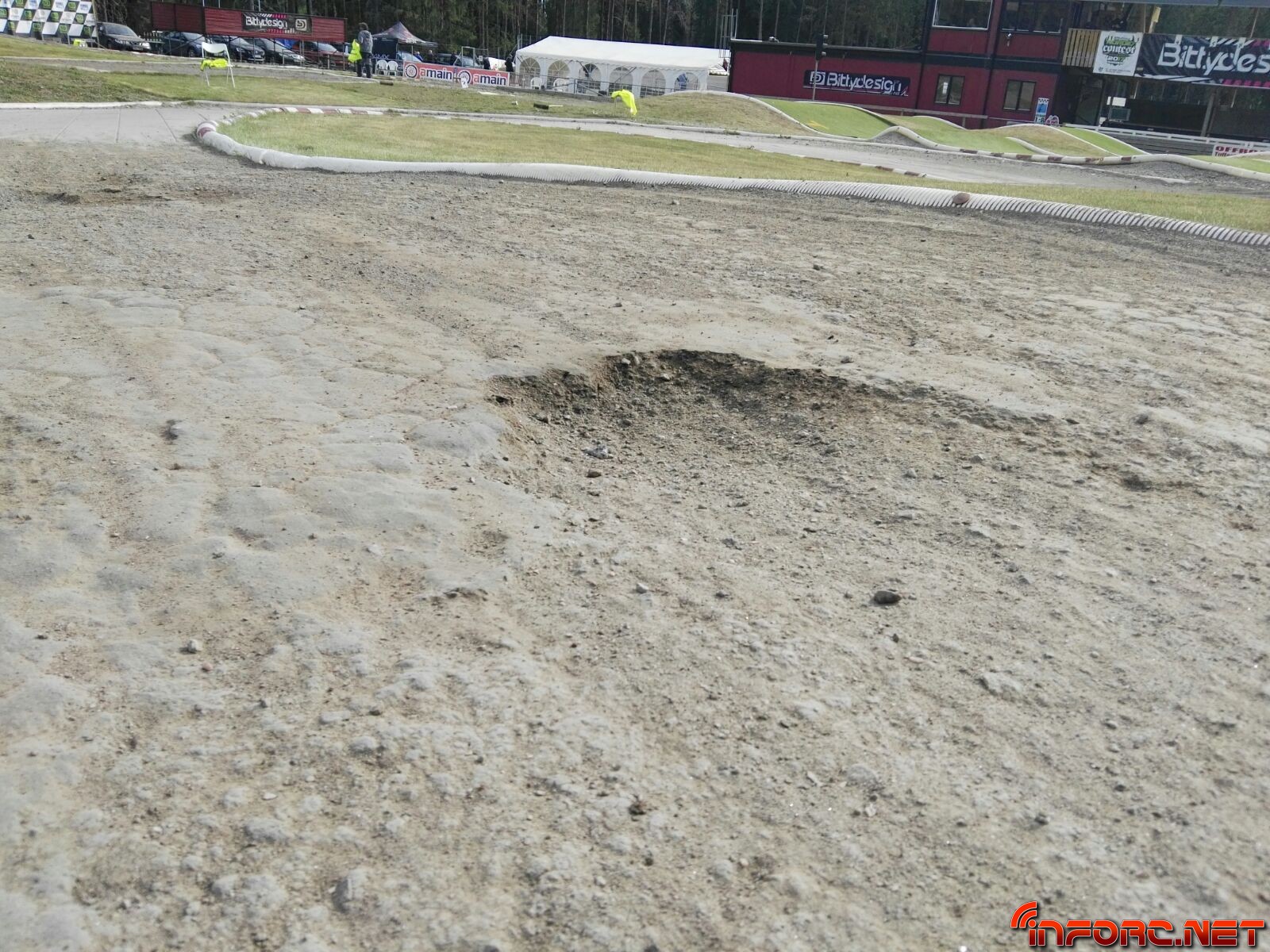 En esta ocasión, todos coinciden en que las espectaculares instalaciones del club Eskilstuna MotorSport Arena flojean en algo super importante, la superficie del trazado. Con el paso de los coches, el trazado sueco se rompió y bacheó a niveles muy alejados de lo que podría considerarse un circuito a la altura de un Campeonato de Europa, con baches en los que cabía un coche entero, como podéis ver en las fotos más abajo.