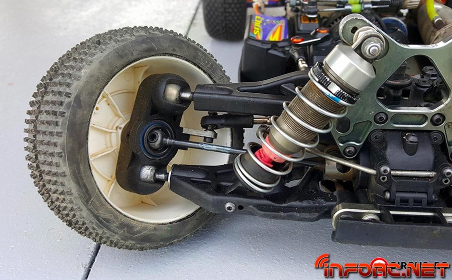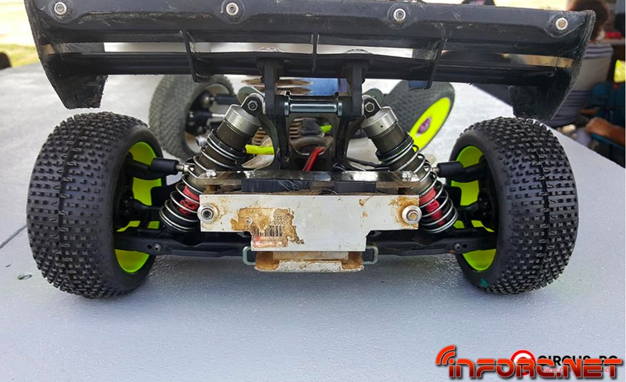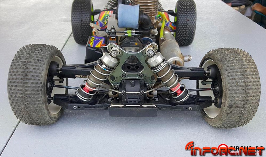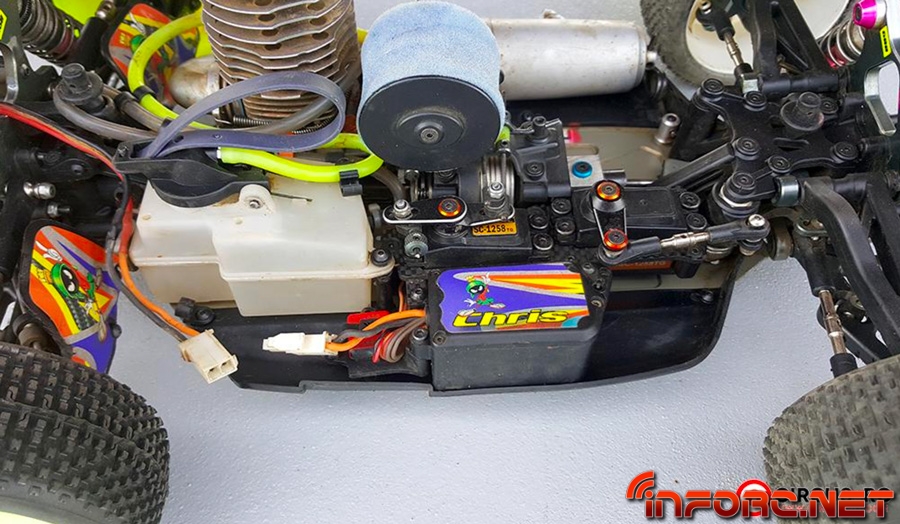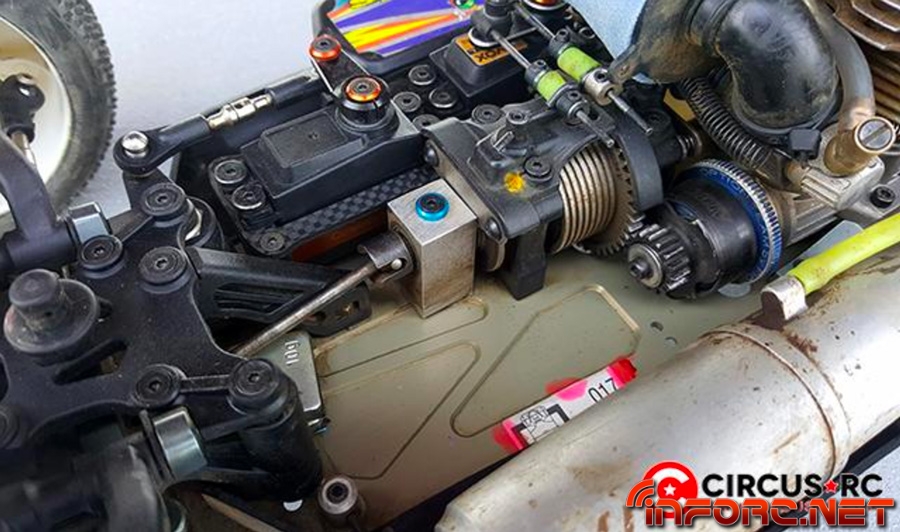 Como puede observarse, el diseño se centra en ubicar todo el peso posible en el tren trasero, para lo cual se realizan algunos cambios sobre la base original, además de añadir algunas piezas adicionales. El depósito de combustible ha sido cambiado de ubicación, para lo cual ha sido necesario desplazar la caja de receptor junto al servo de gas. Además, se ha añadido una placa de peso bajo el alerón, así como un cuerpo de diferencial metálico al diferencial central.