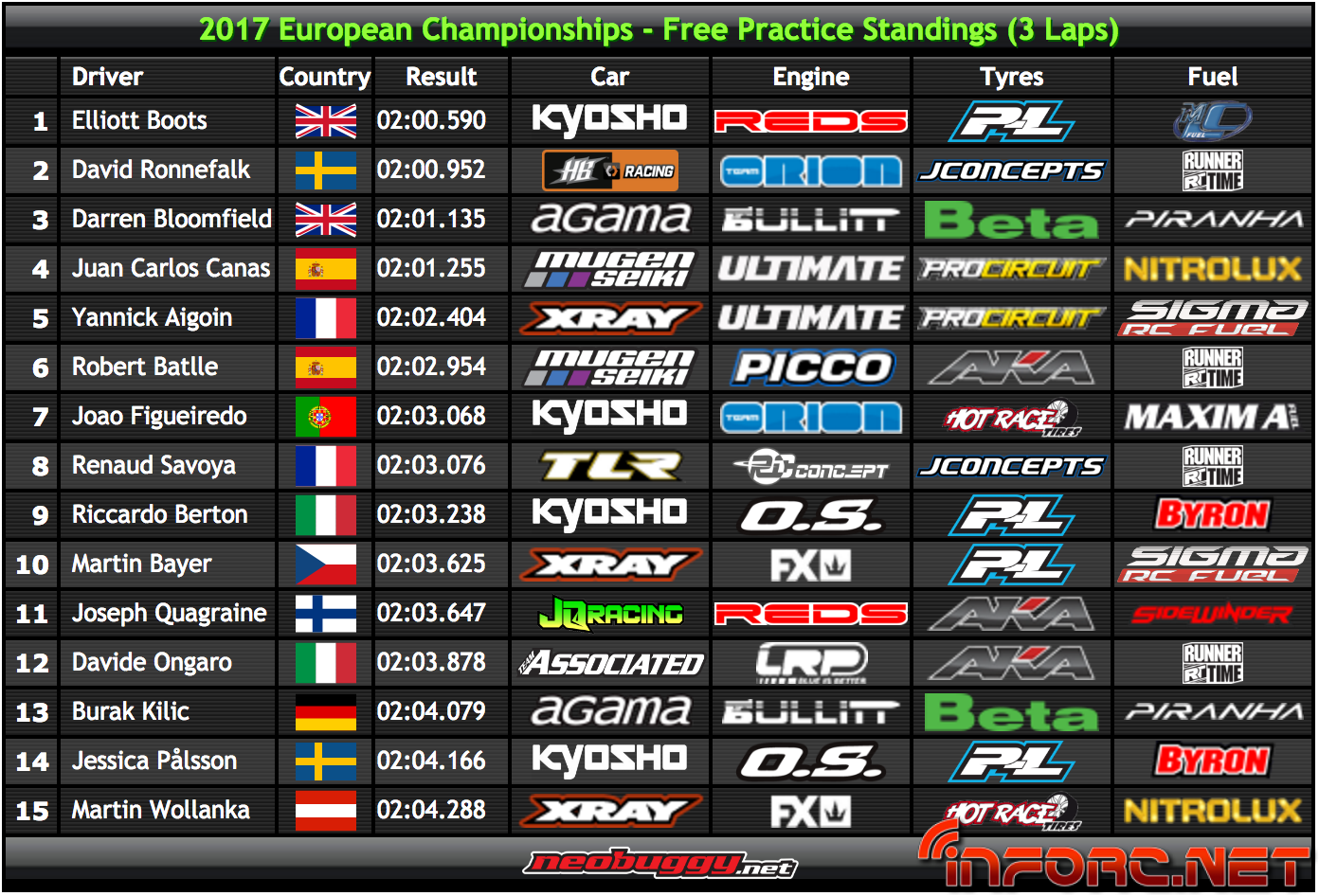 Darren Bloomfield por su parte ha tenido un gran día, estrenando el nuevo alerón Beta y colocándose con él tercero en la general, seguido de Juan Carlos Canas en cuarta posición, el español mejor clasificado en estos entrenamientos libres ¡Gran trabajo del piloto malagueño!. Su mecánico comentaba en redes sociales: