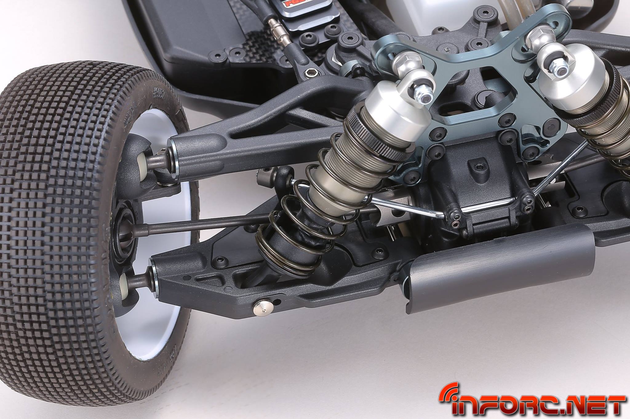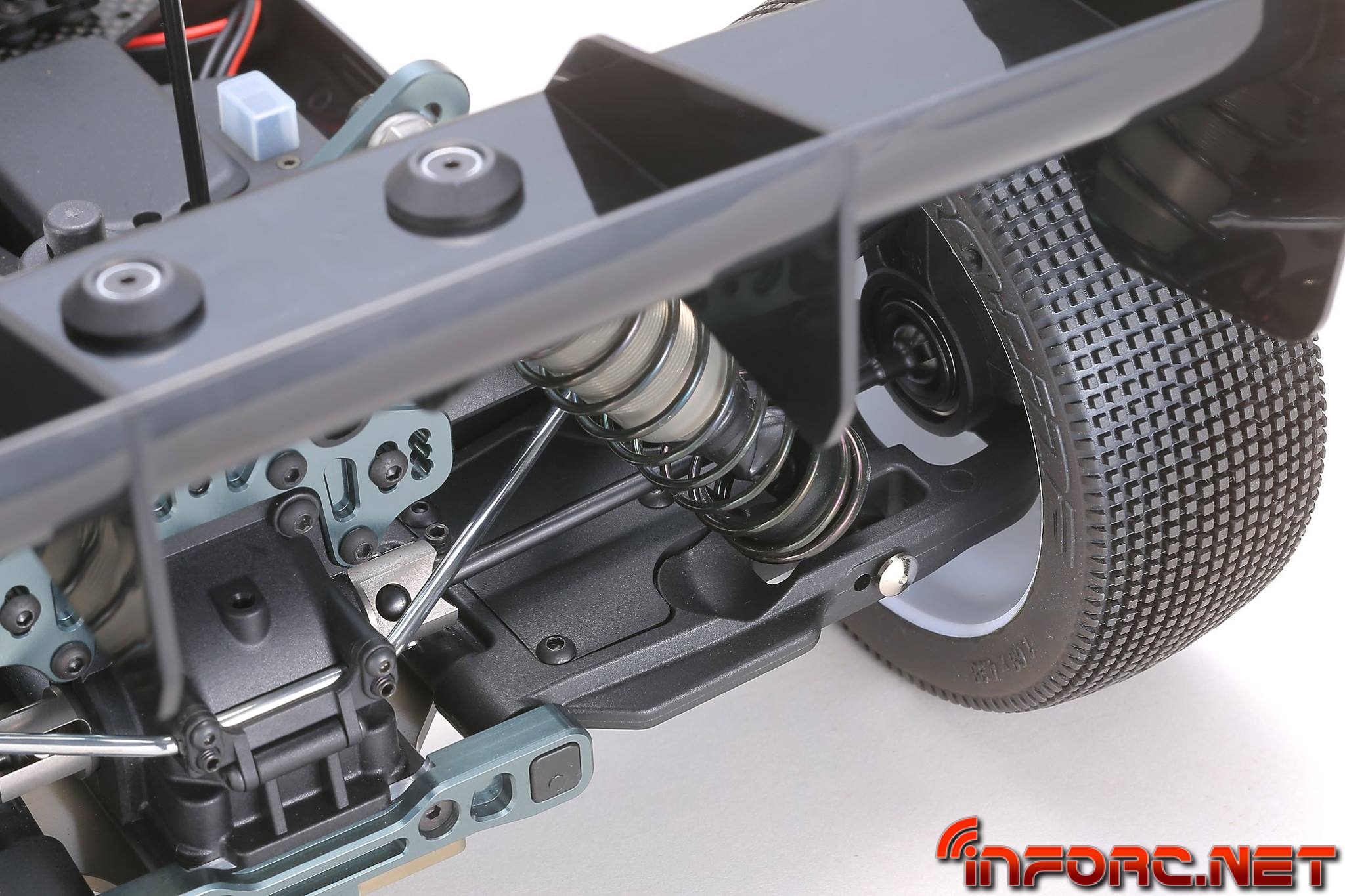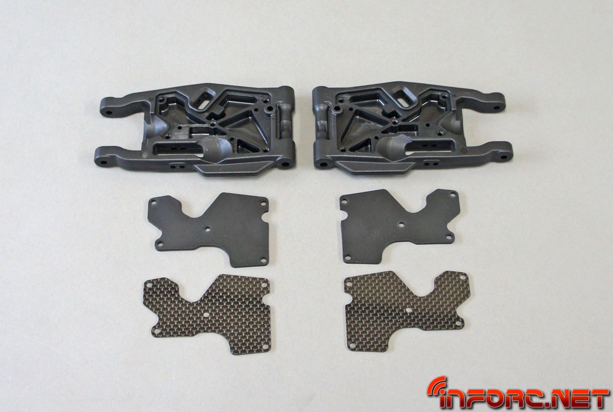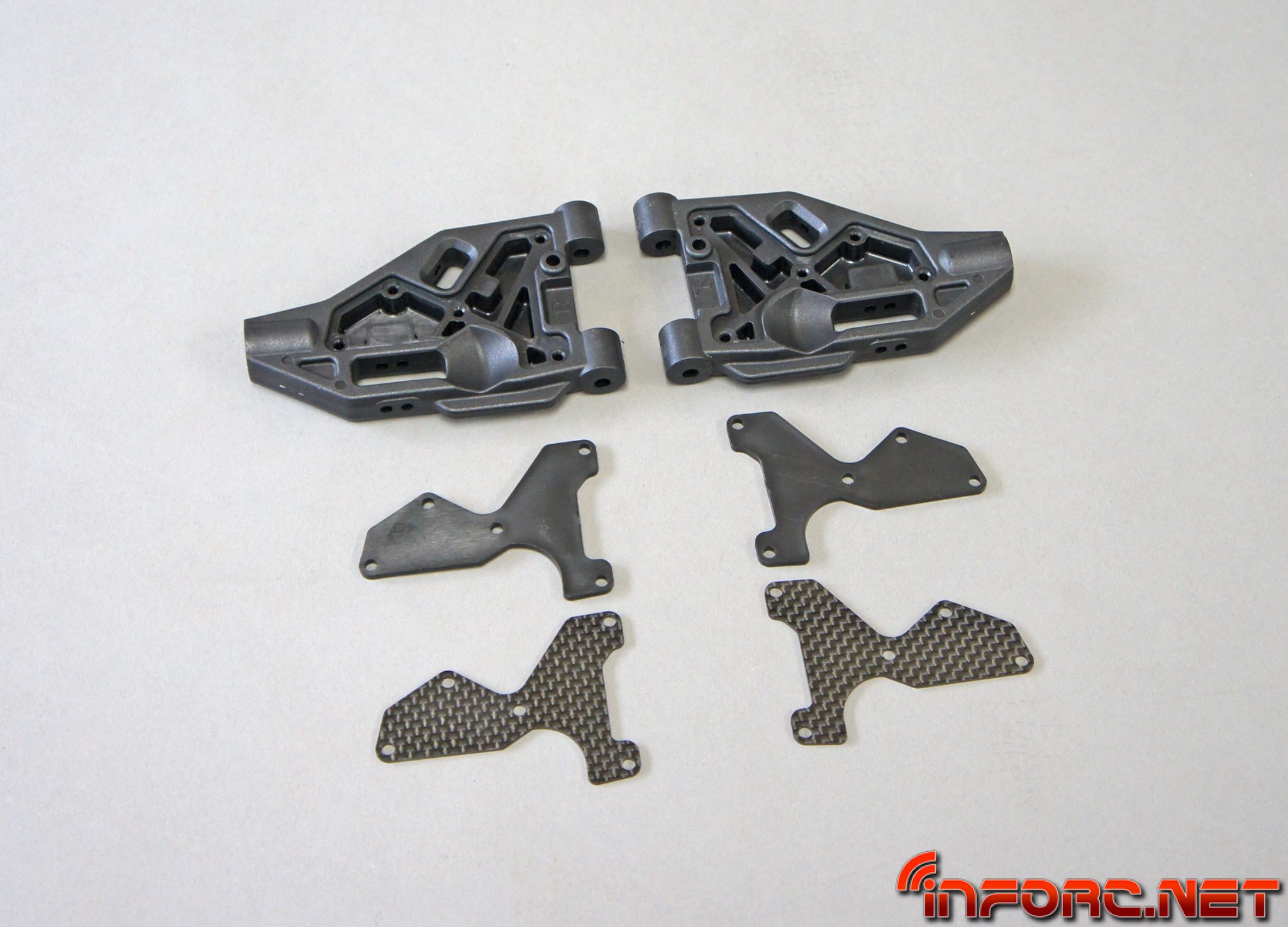 - Los trapecios inferiores usan un nuevo material más resistente a los impactos para una mayor durabilidad. Además tienen un diseño que permite anclar refuerzos para reducir la flexibilidad y mejorar su durabilidad. Ajustar la dureza de los trapecios es posible, permitiendo ahora ajustar la respuesta de la dirección y la tracción según las necesidades del circuito. Proximamente se lanzarán placas de fibra de carbono como pieza opcional.
