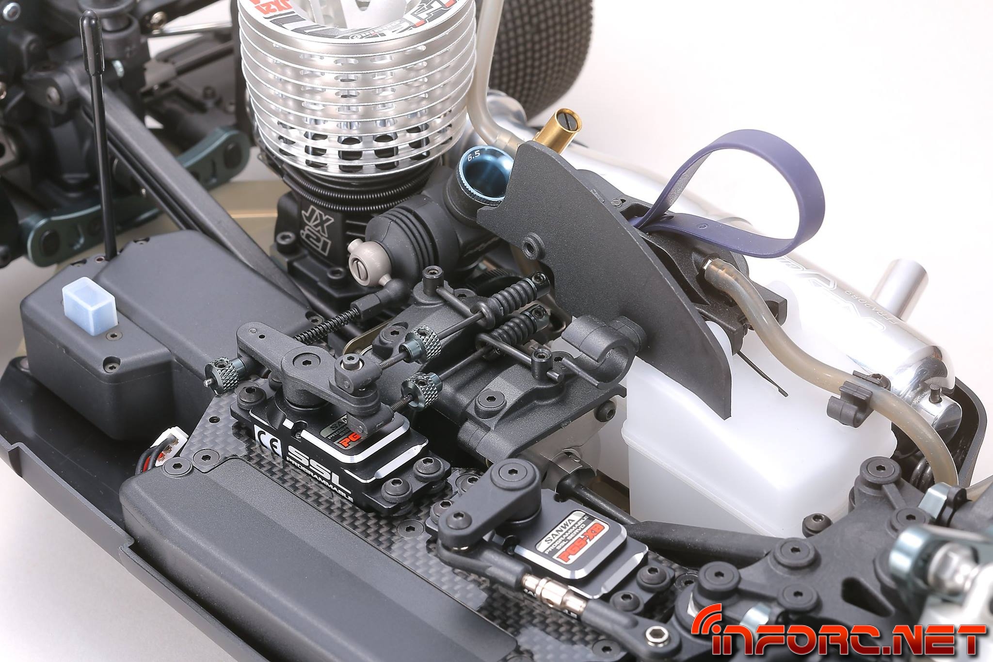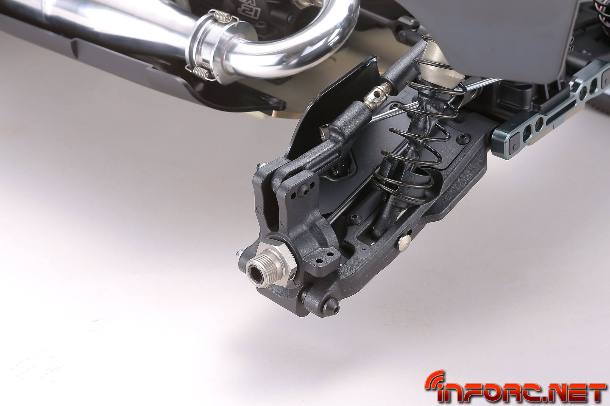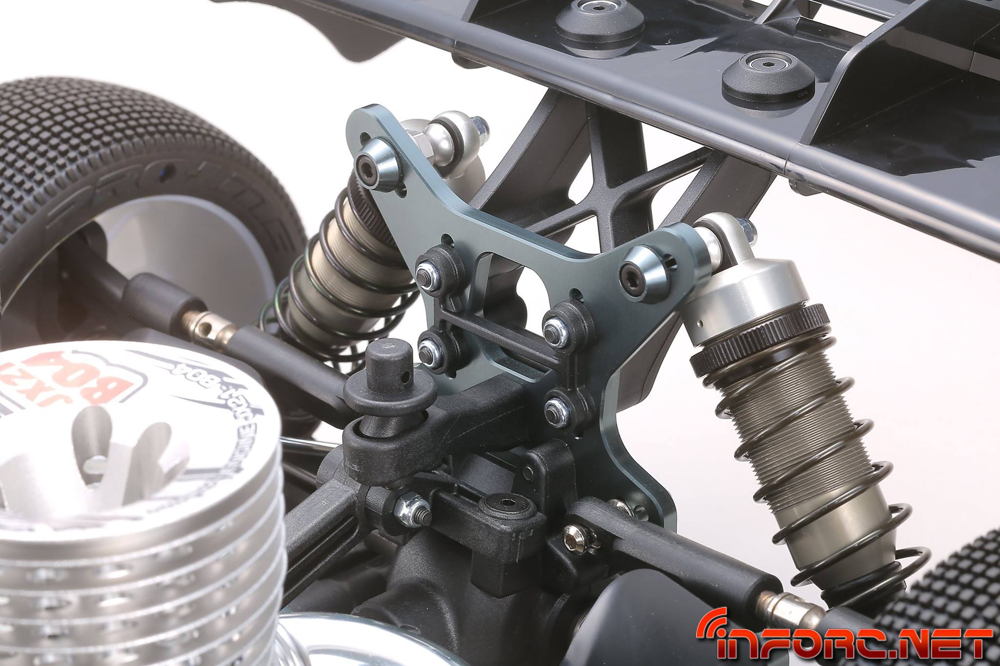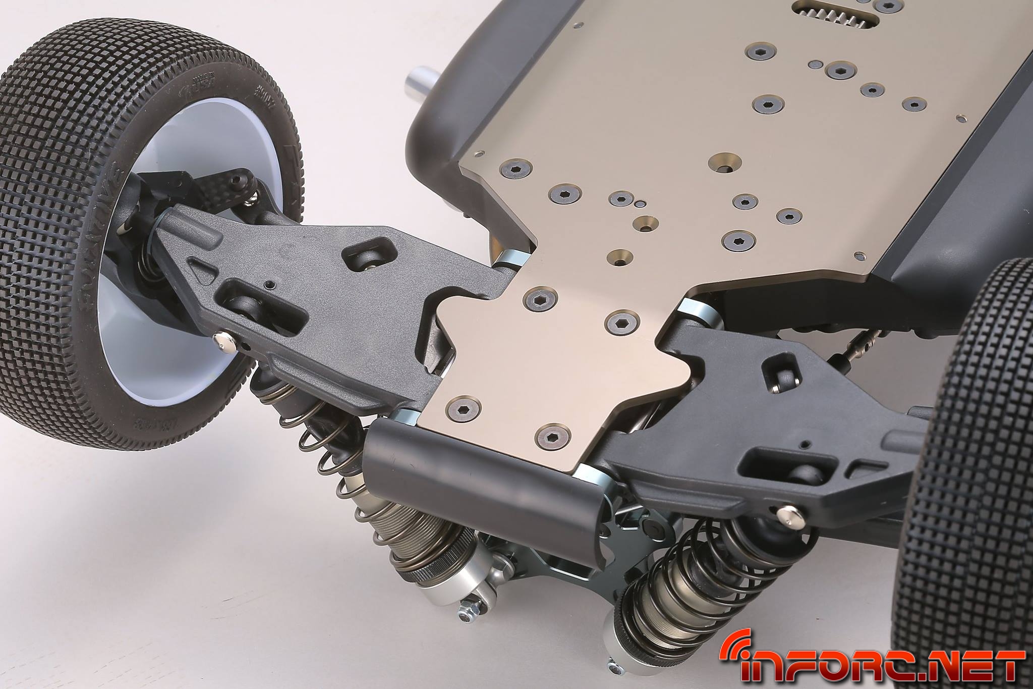 - Los trapecios inferiores usan un nuevo material más resistente a los impactos para una mayor durabilidad. Además tienen un diseño que permite anclar refuerzos para reducir la flexibilidad y mejorar su durabilidad. Ajustar la dureza de los trapecios es posible, permitiendo ahora ajustar la respuesta de la dirección y la tracción según las necesidades del circuito. Proximamente se lanzarán placas de fibra de carbono como pieza opcional.
