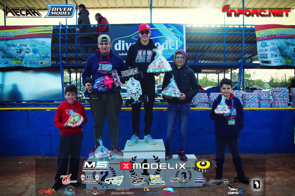 Sus compañeros de equipo Jaume Figuls y Martin Roca le han acompañado en el podio de la final tras unas finales A muy movidas con luchas por el segundo y tercer puesto entre ellos dos y Espasa, que finalmente ha terminado en quinta posición. Estamos preparando el vídeo con las tres finales A comentadas junto a Juan Carlos Canas, así que seguid atentos a infoRc.net para no perdéroslo en cuanto lo publiquemos.